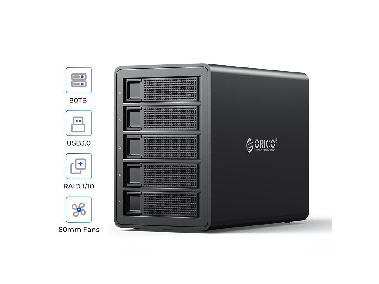 ORICO 5 Bay Raid Enclosure External Hard Drive Enclosure Case Support 90TB for 2.5/3.5 in HDD SSD Aluminum Hard Drive Docking Station for Enterprise Data Storage Built-in 150W Power With Raid