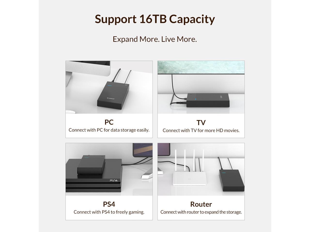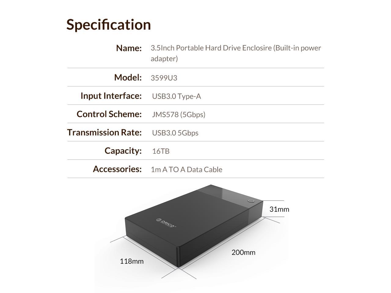 ORICO 3599U3 Built-in 12W Power Adapter 3.5inch Tool-Free Portable External Hard Drive Enclosure USB3.0 to SATA III Drive Case for 2.5 3.5 SSD HDD Up to 16 TB for Windows Linux Mac Laptop