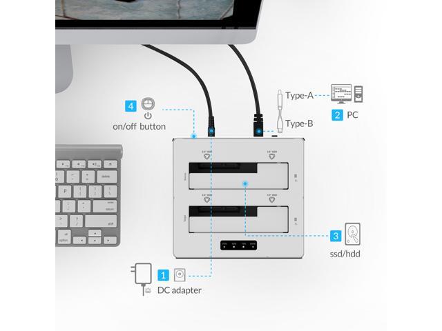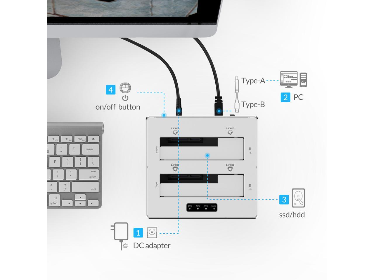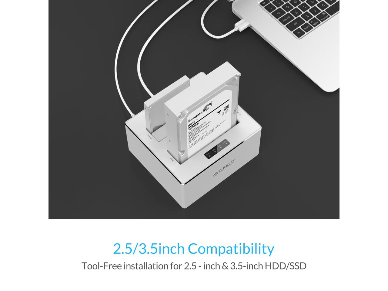 ORICO 6828US3-C Aluminum & Plastic SATA to USB 3.0 Hard Drive Docking Station with Stand Alone Clone Function for 2.5" & 3.5" HDD/SSD, Maximum 8TB - Silver