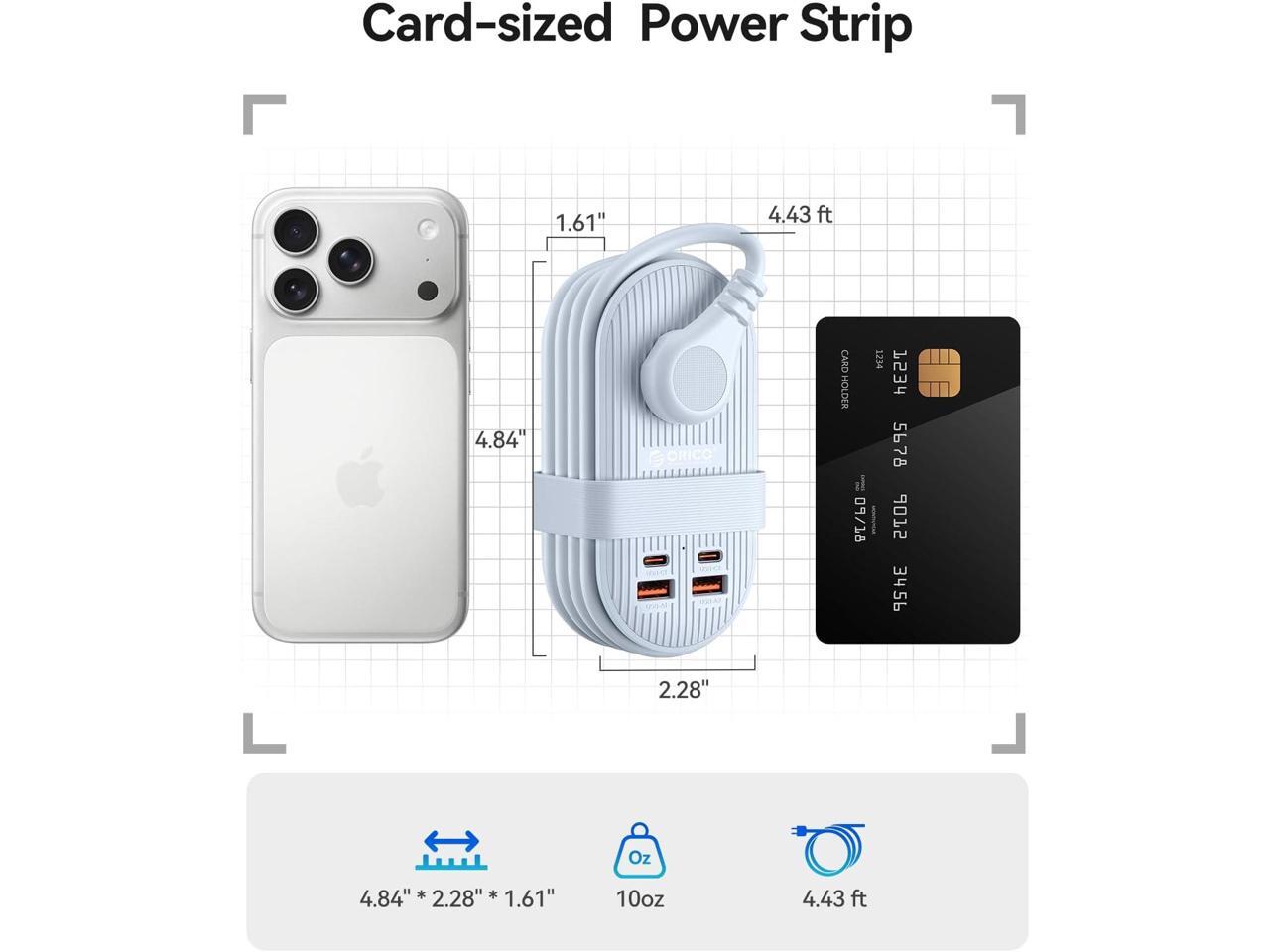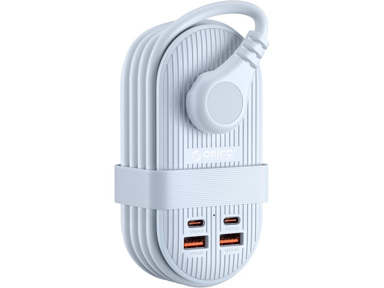 ORICO 65W USB Travel Power Strip, 7 in 1 Charging Station with 3AC, 2 USB-A, 2 USB-C, Flat Plug and 4ft Thin Extension Cord, Fast Charger for MacBook, iPad, iPhone 17/16/15 - TK65