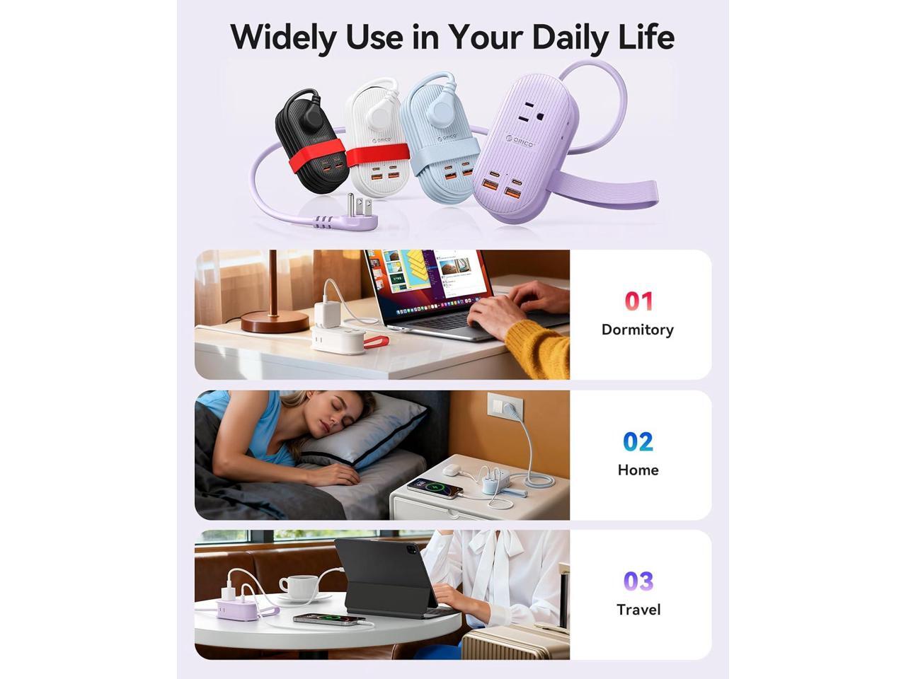 - ·Perfect Gift For Her/He:This multi-colored (black, white, blue, purple) power strip meets your color preferences. Its not just a power strip its like a travel charging manager, great for people who love to travel.