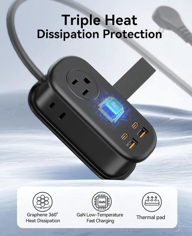 Compact design with 3 AC outlets, 2 USB-A ports, and 2 USB-C portsideal for charging multiple devices at once. Retractable cord makes it easy to carry and store.