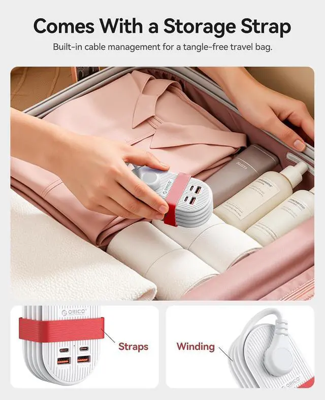 Winding and Tying Design: The design cleverly secures the extension cord to the product and comes with a dedicated strap, eliminating the problem of tangled wires.