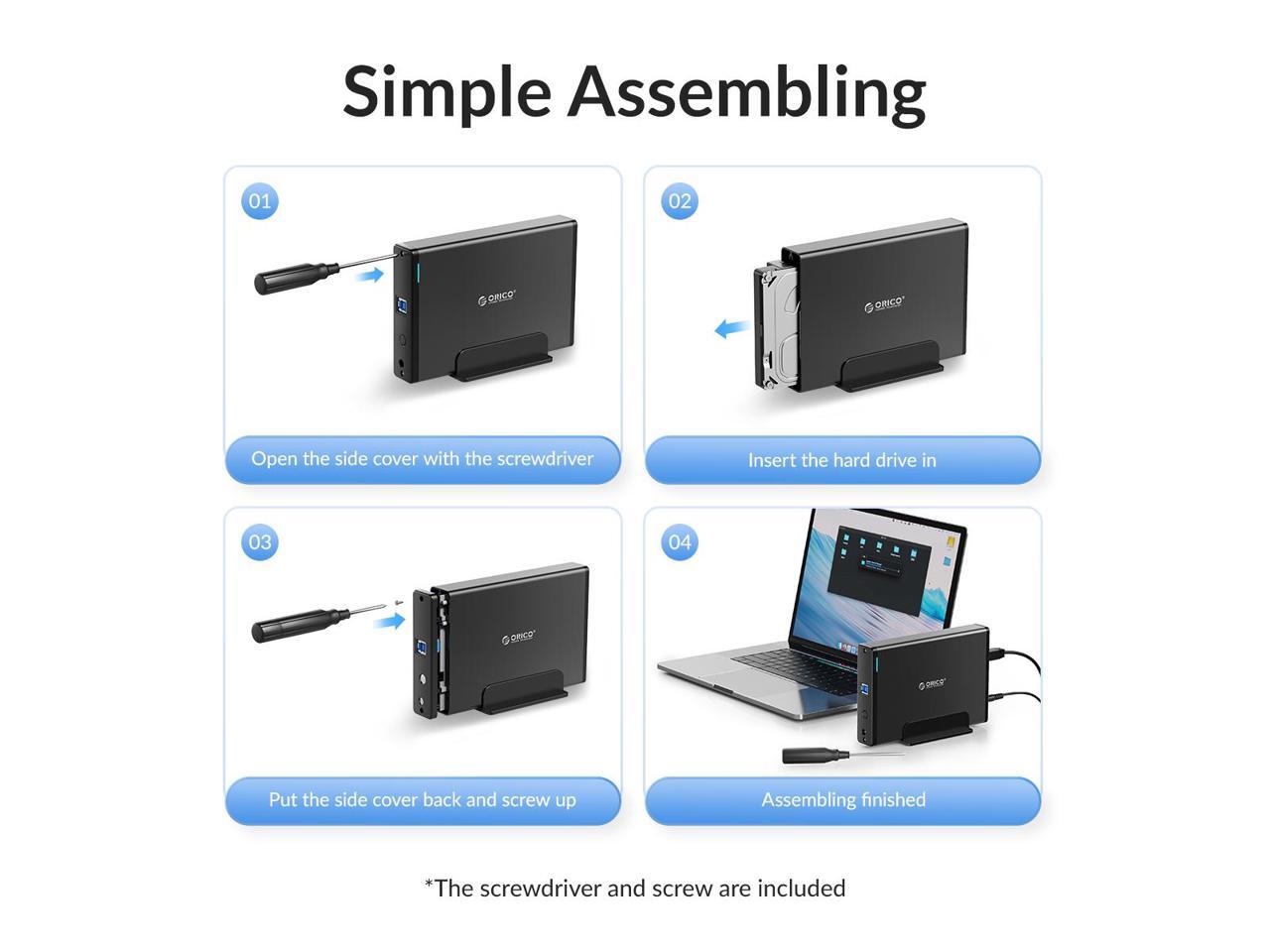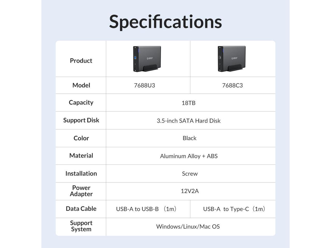 ORICO USB-C Type-C Aluminum 3.5 inch Hard Drive HDD Enclosure USB-C Gen 1 SATA3.0 3.5" HDD Docking Station Vertical Case Support UASP with Power Adapter for HDD and SSD Tool Free 16TB
