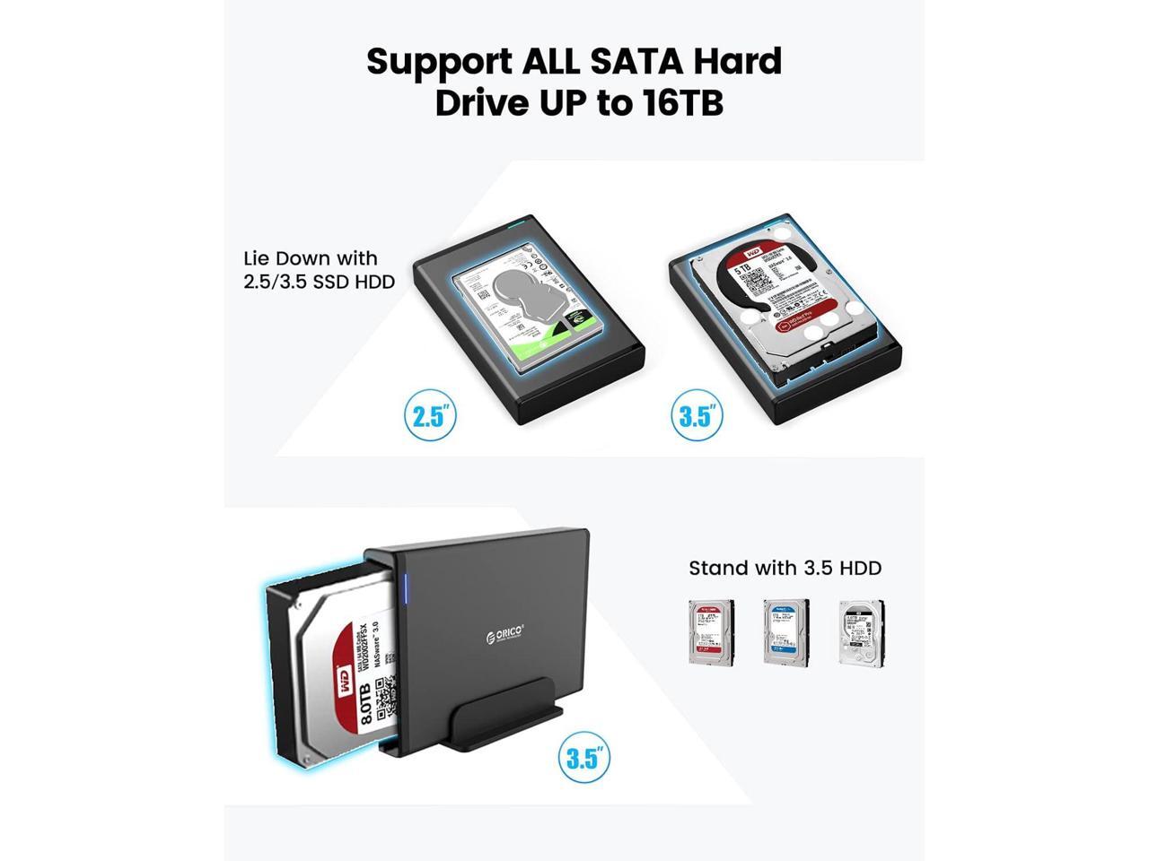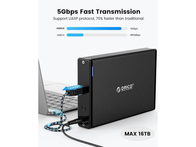 ORICO 3.5 Inch External Hard Drive Enclosure with Removable Enclosure USB 3.0 to SATA 3.0 5Gbps for SATA 3.5 Inch HDD with 12V 2A Power Supply Adapter (16TB Max, Blue Display) 7688U3