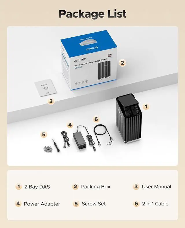 ORICO 2 Bay Enclosure 5Gbps Type-C Hard Drive Docking Station for SATA 2.5"/3.5" HDD SSD