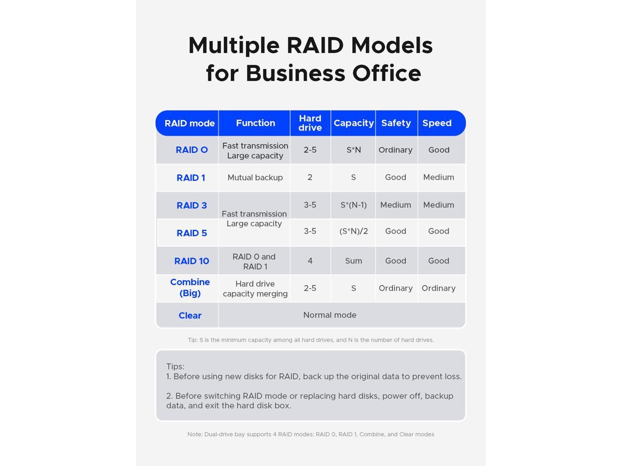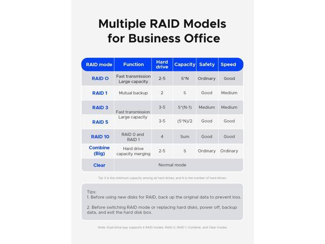 - Versatile RAID Support: Featuring 7 RAID array modes, users can configure the setup according to their needs, enhancing data storage performance, security, and reliability.