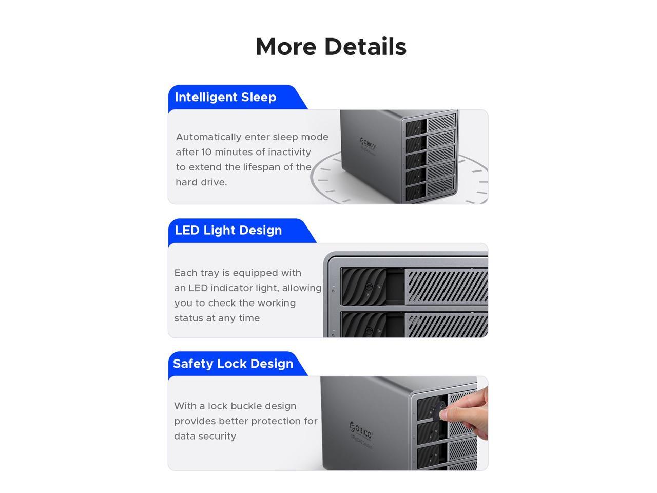 - Secure Data Protection: The enclosure includes an independent latch-type door with a safety lock, providing secure hard drive protection to prevent accidental ejection and falling, ensuring data safety.