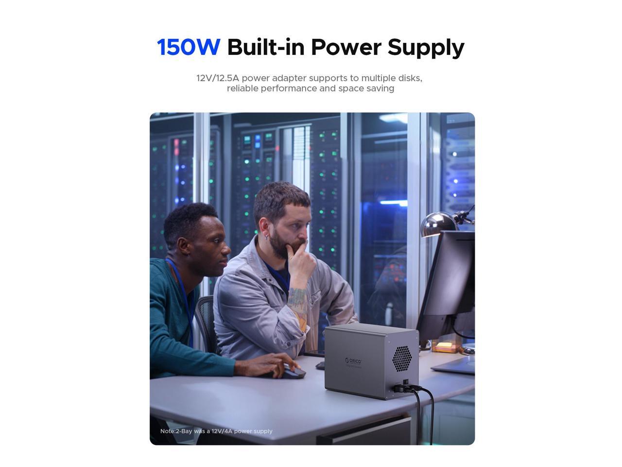 ORICO 5 Bay 3.5" Hard Drive Enclosure USB3.0 5Gbps DAS PRO with RAID 150W Power Build-in Cooling Fan for Business User Aluminum (9858RU3)