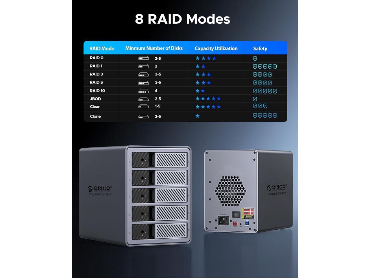ORICO RAID 5 Bay HDD Enclosures USB 3.0 Push-Pull Mounting for 3.5-inch HDD, Max 110TB, External Direct Attached Storage 8 RAID Modes Supported 9858RU3