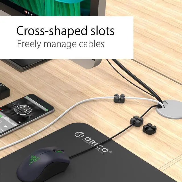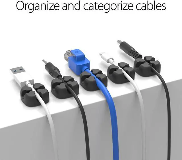 Compatible with all cables within 5MM diameter, such as power cord, data cable, audio cable, mouse cord and other charging accessories. Multiple occasion applicable, which can be used on the desktop, wall, or can be used in your car. Equipped with high strength double-sides tape, ensuring good adhesion and permanence performance, convenient for you to stick it on the desktop or wall, and leaves no traces. Made of high-quality silicone material, possesses great elasticity and crush resistance, fully protect the cables. What is in the box