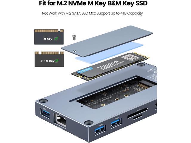 - 4TB Storage Expansion with M.2 NVMe Enclosure, support M.2 NVMe M key and B&M key 2230/2242/2260/2280 NVMe SSDs (not for M.2 SATA SSD)