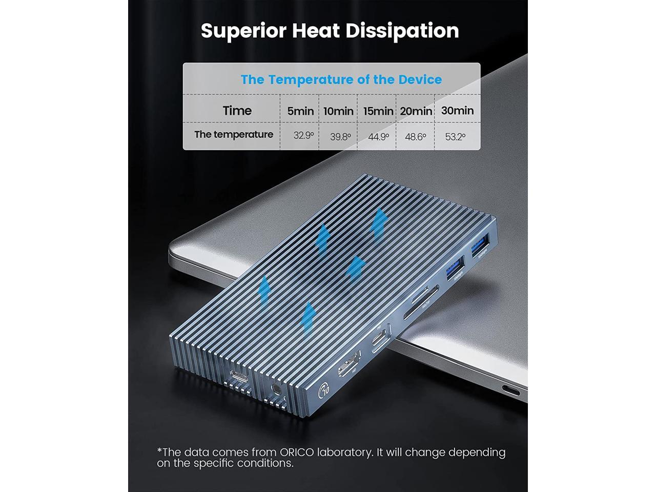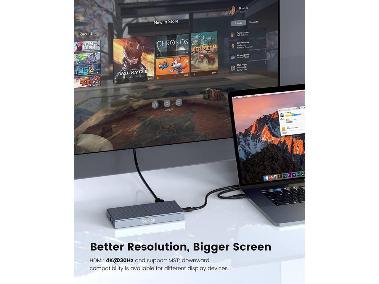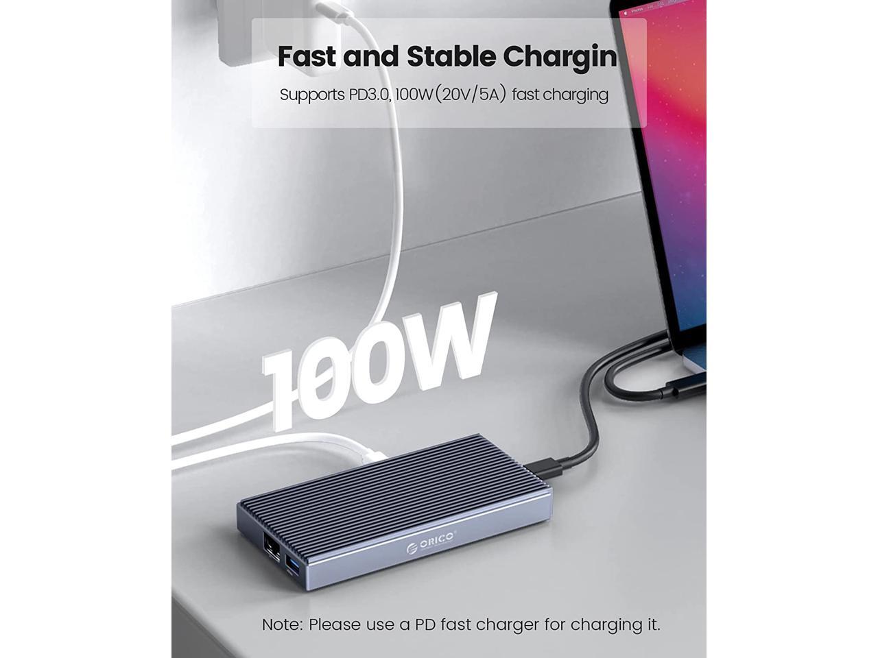 ORICO USB-C Docking Station with M.2 NVMe SSD Enclosure(Max 4TB), 9-in-1 USB-C Hub Adapter, PD 100W, 3 x 10Gbps USB3.1 USB-A, Type-C, 4K HDMI, TF/SD, Ethernet RJ45, Audio for MacBook/ Dell/HP Laptops