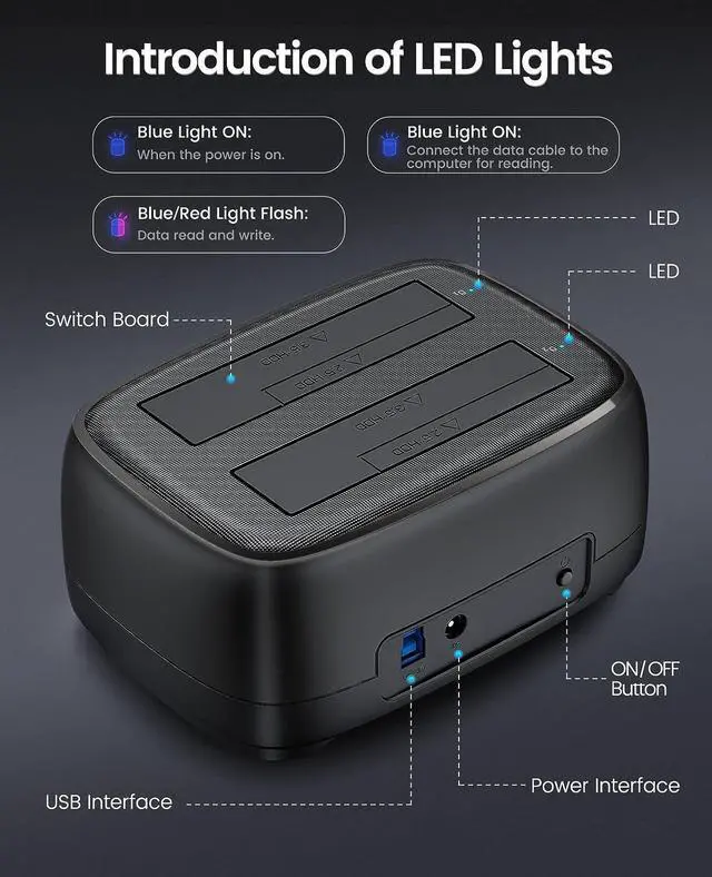 USB 3.0 external hard drive dock support UASP &Trim protocol with transfer speeds of up to 5Gbps;External HDD reader enables instant access to SATA drives for file backup, disk imaging, or data transfer - Tool-less design facilitates hot-swapping