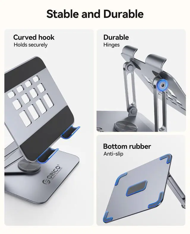 ORICO 360° Rotating Tablet Stand for iPad up to 12.9 Inch, Foldable Tablet Stand for Desk, Aluminum Alloy, Compatible with iPad Pro/Air/Mini, Kindle, Galaxy Tab, Fire, iPhone, Switch - FB2, Gray