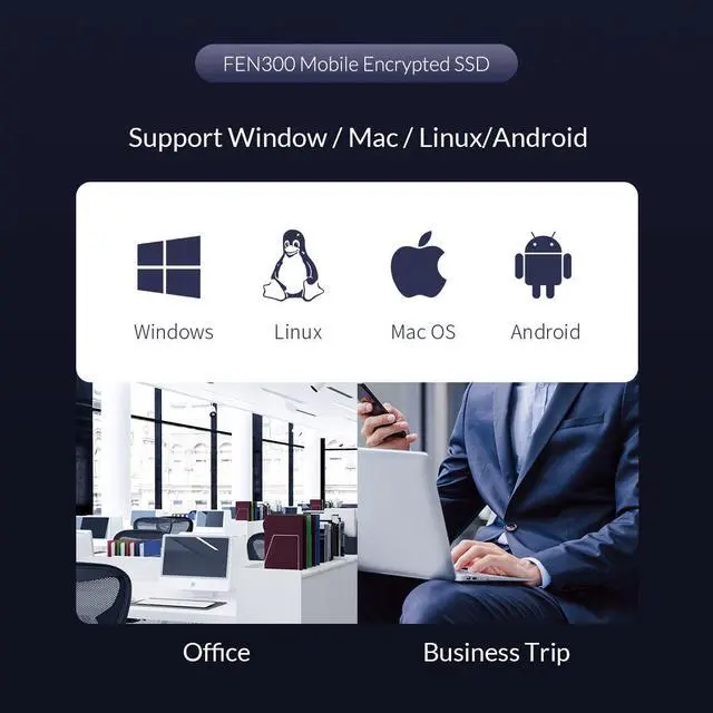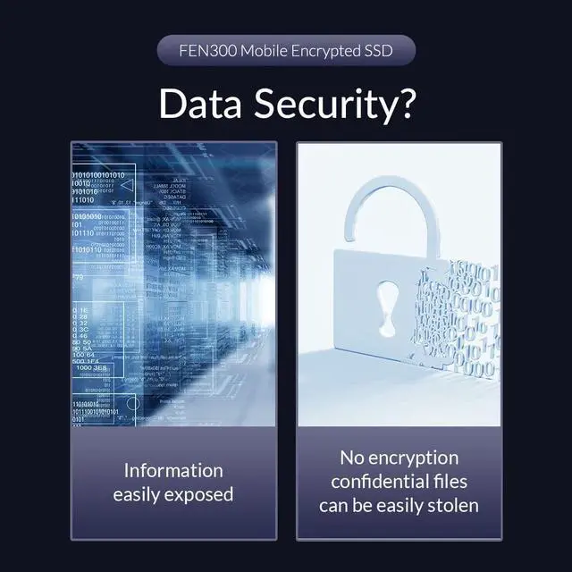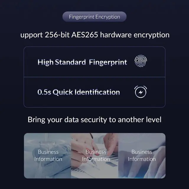 FEN300 is a high-speed portable external SSD with fingerprint encryption function. It adopts biometric technology for precise identification, smart fingerprint high-sensitivity sensor, and supports up to 10 groups of fingerprint users and manages permissions flexibly. It adopts USB3.1 Type-C high-speed transmission interface, supports UASP acceleration protocol, and the maximum read and write rate can reach 450MB/s. Portable and lightweight design, you can easily manage your work and life entertainment content with you.