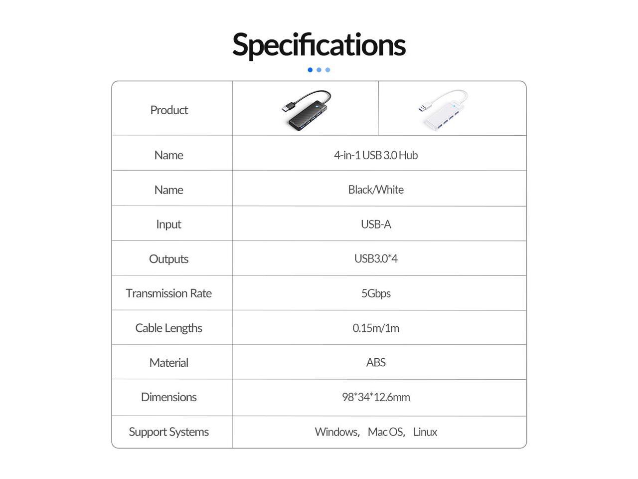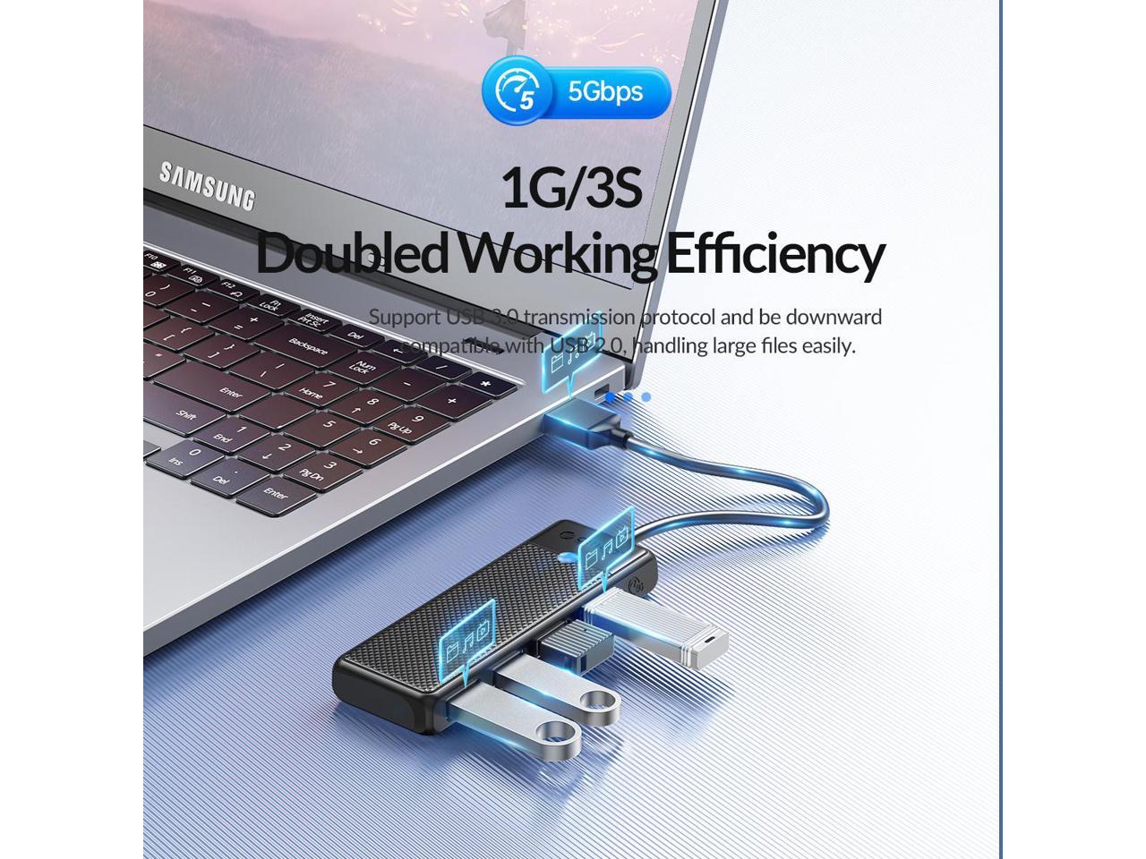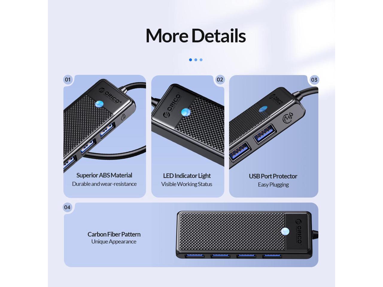 ORICO 4-Port USB 3.0 Hub, Ultra-Slim Data USB Hub with 0.5ft Extended Cable for Windows,XP, Vista ,Windows, Linux and Mac Desktop or Laptop -Black