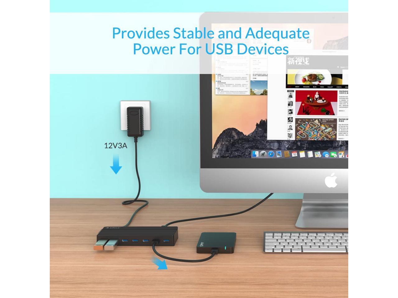 Powered 7-Port USB 3.0 Hub, ORICO USB Data Hub with 12V Power Adapter, Multi USB 3.0 Splitter with 3.3 Ft Long USB Cable for PC, Laptop, Keyboard, Mouse, HDDs and More-Black