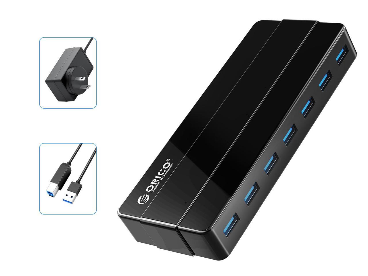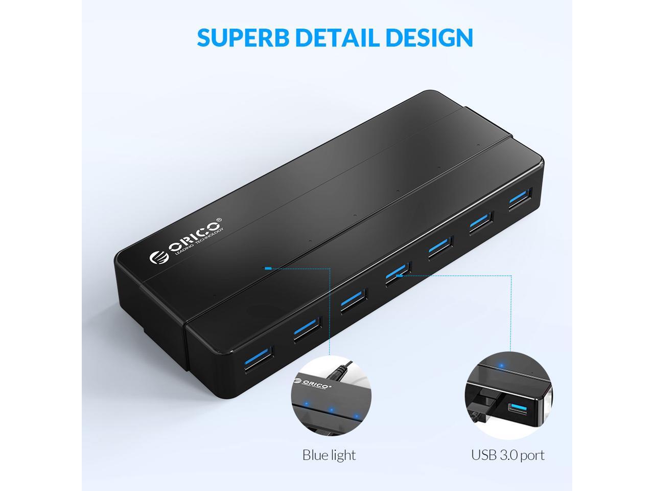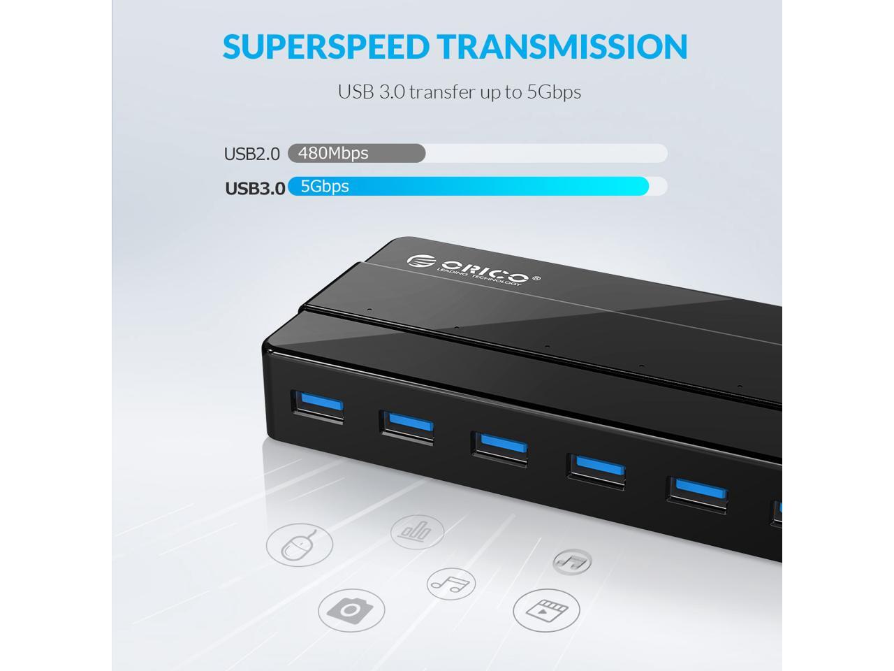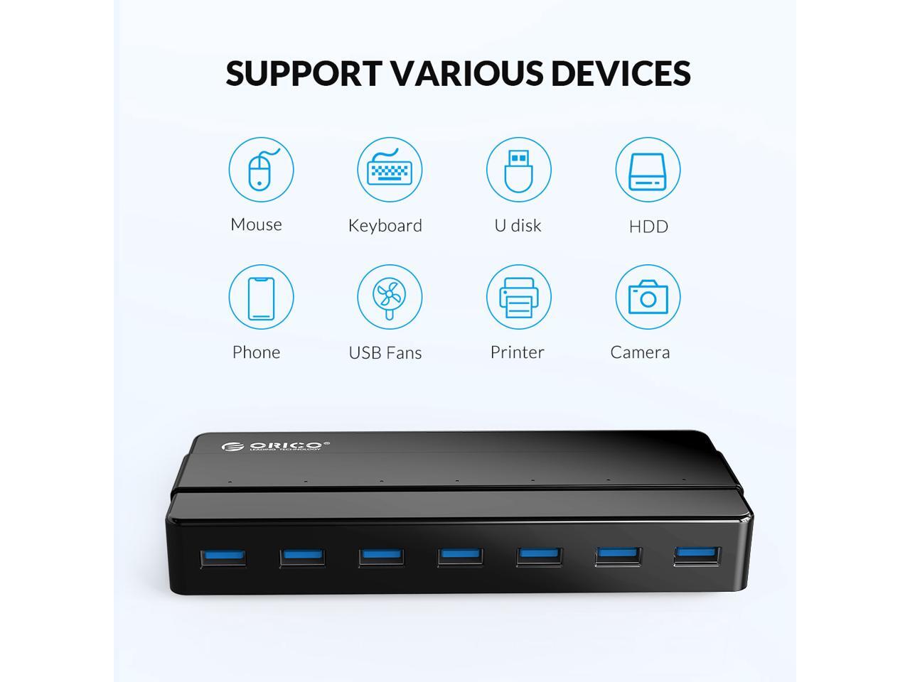 ORICO USB 3.0 Hub 7-Port Powered USB3.0 HUB High-Speed Data Transfer with Premium 12V Power Adapter LED Indicator for Windows, Mac OS, Linux, USB Flash Storage and Other Devices
