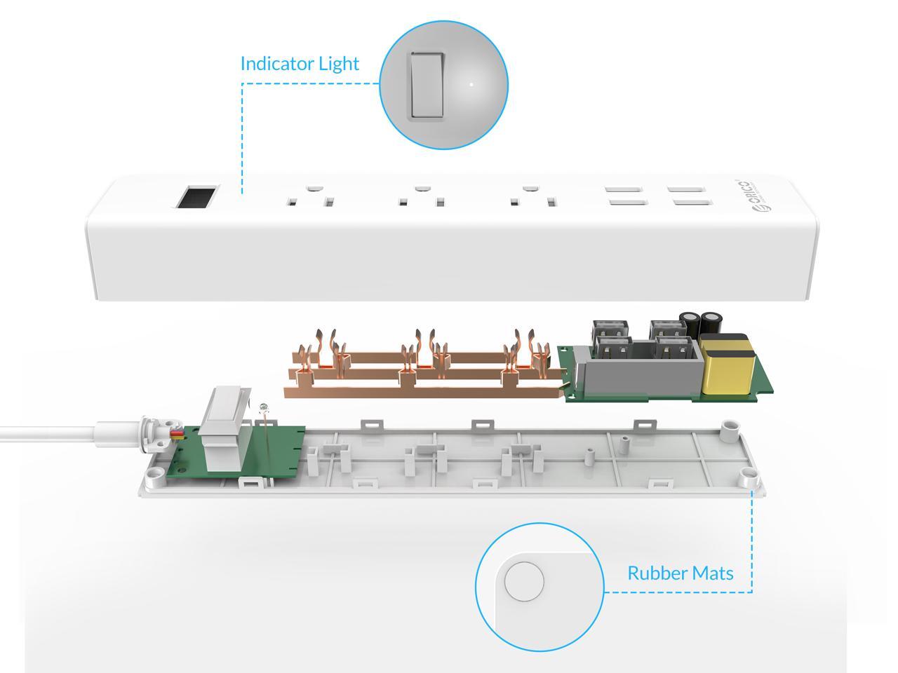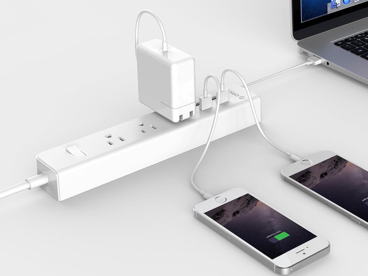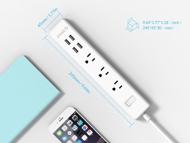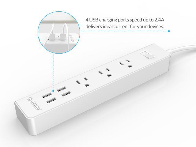 ORICO 3 Outlet Power Strip with 4 USB Super Charger Ports 4.9Ft SurgeArrest Home / Office for iPhones ,iPad, Samsung , Nexus, HTC,Tablets, Laptops & Desktops - White (HPC-3A4U-US)
