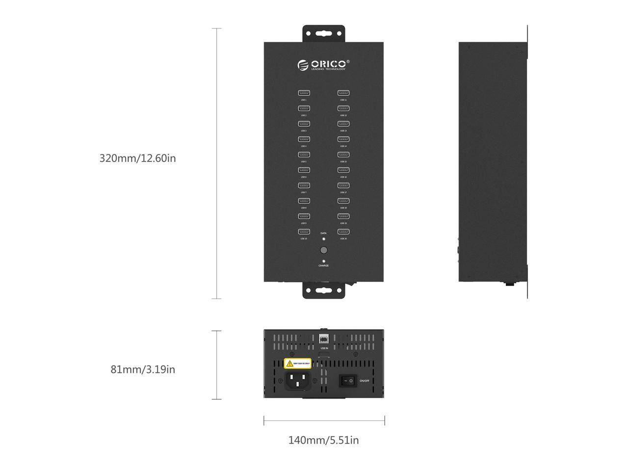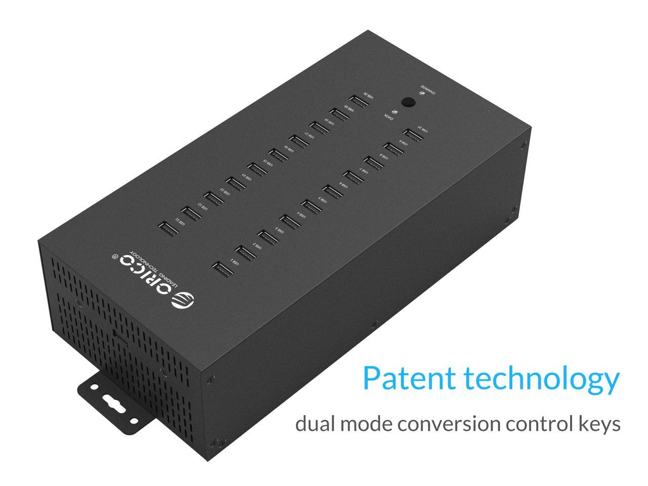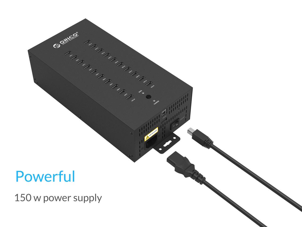 ORICO Industrial USB Hub, 20 Ports Mountable 150W Powered Industrial Grade USB 2.0 Hub, Full Metal Case, High-Speed Data Transfer