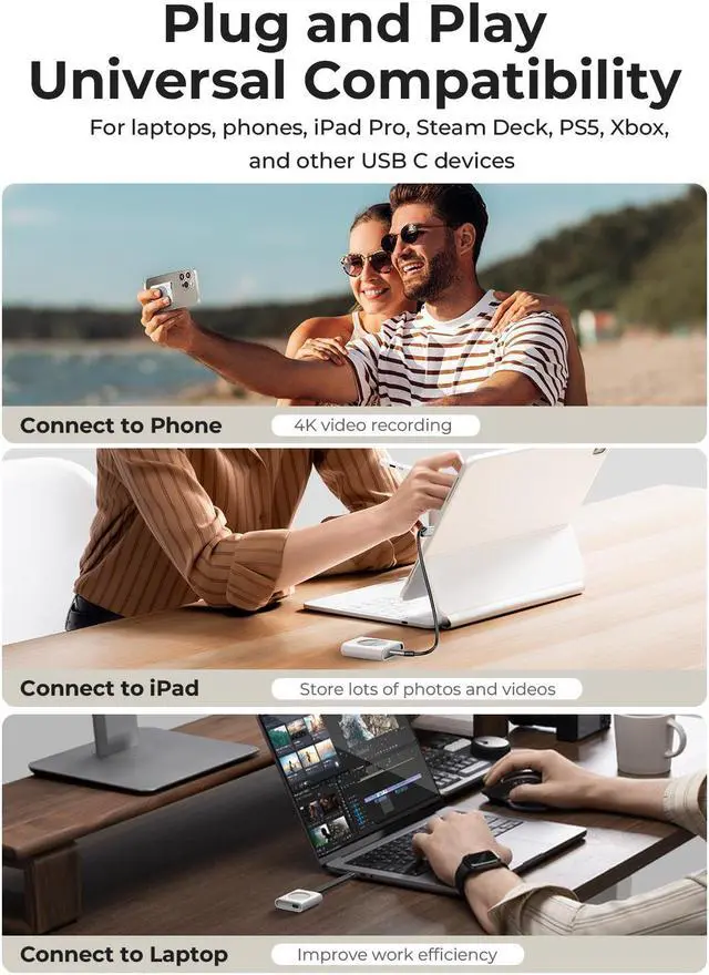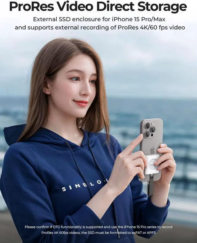 Moreover, this enclosure is ideal for recording and storing 4K ProRes videos directly to an NVMe M. 2 SSD via USB-C. It is even compatible with the latest iPhone 15 Pro/Pro Max. Supporting up to 2TB storage and multiple operating systems, it provides up to 300 minutes of real-time recording without any transfer delays or memory issues.