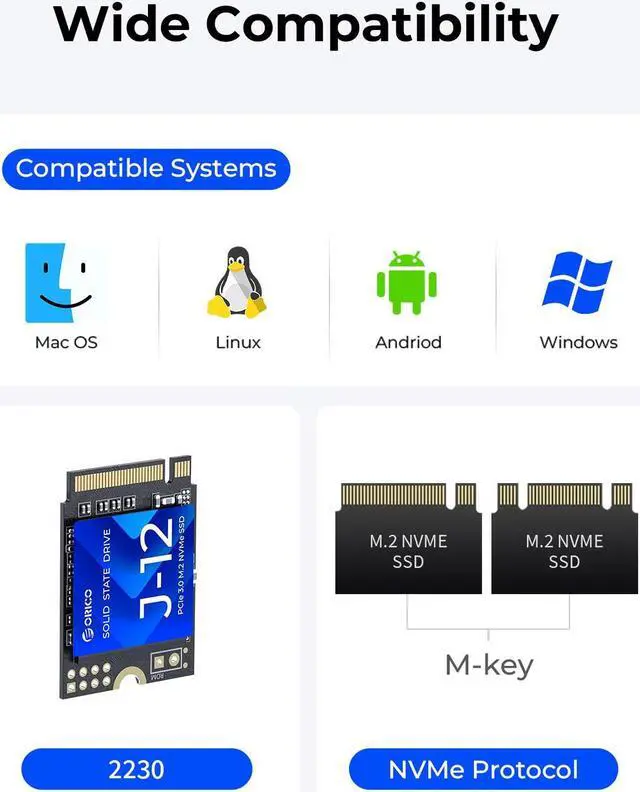 Introducing the Compatible and Portable 2230 M. 2 NVMe SSD Enclosure, a must-have accessory for mobile professionals and enthusiasts seeking reliable storage expansion on the go. Designed to support 2230 NVMe SSDs (M-Key) up to 2TB, this compact enclosure is perfect for those in need of additional storage space.