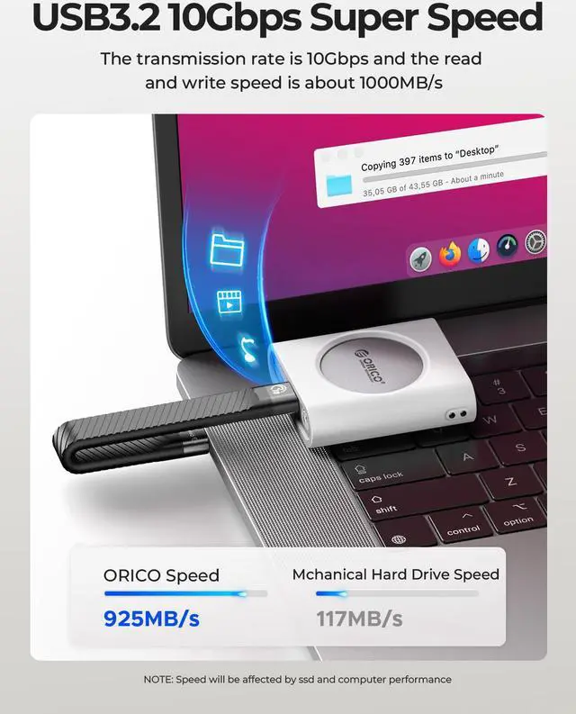 With its high-speed 10Gbps transfer rate via USB 3.2 Gen 2, the ORICO 2230 M. 2 NVMe SSD Enclosure ensures rapid data transfer, quick access, and seamless file transfers, ultimately enhancing workflow efficiency.