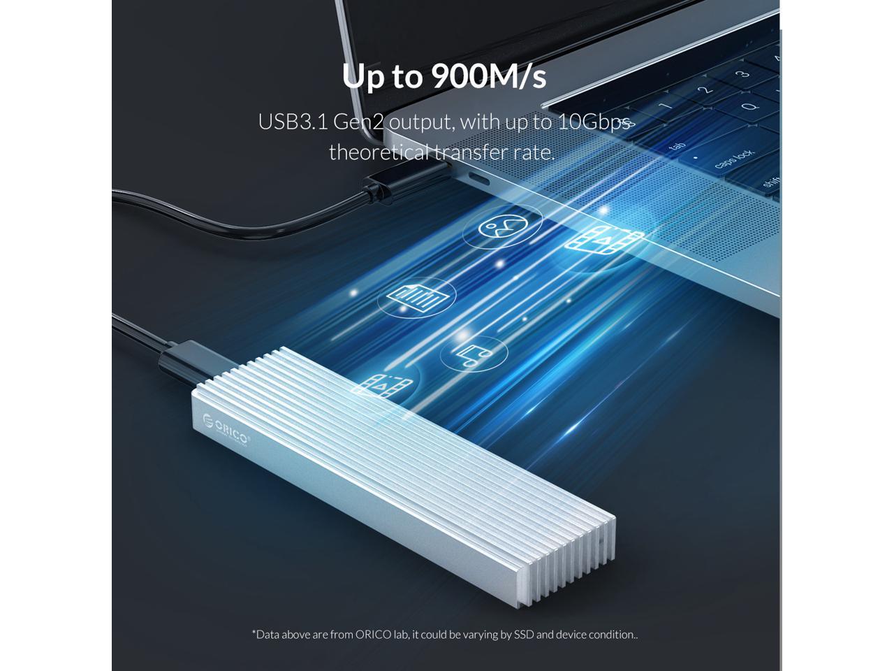 - 10Gbps SUPER SPEED: ORICO external M.2 enclosure adopting the latest USB3.1 Gen2 Type-C port, supports data transmission speeds of up to 10Gbps.