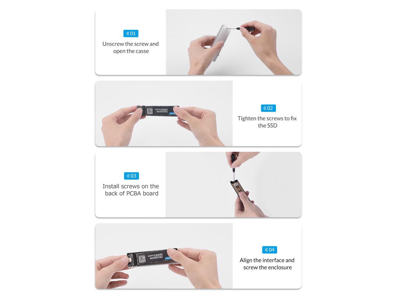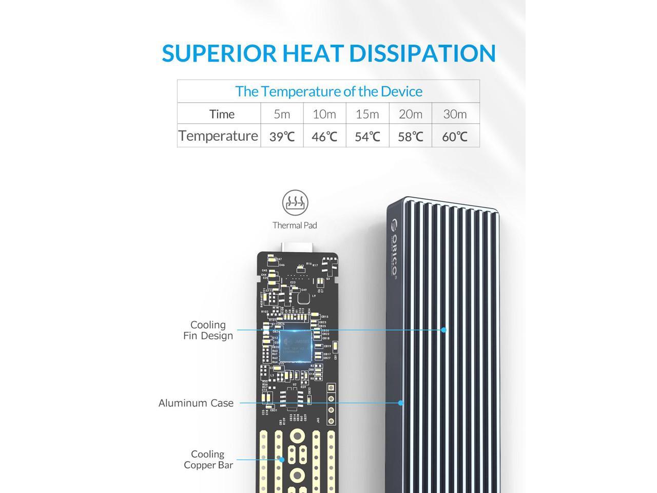 - EXCELLENT HEAT DISSIPATION: The copper bars with holes on the PCBA board and the thermal pad attached to the m.2 external enclosure, with the aluminum alloy case can ensure a perfect cooling performance for the solid-state Drive.