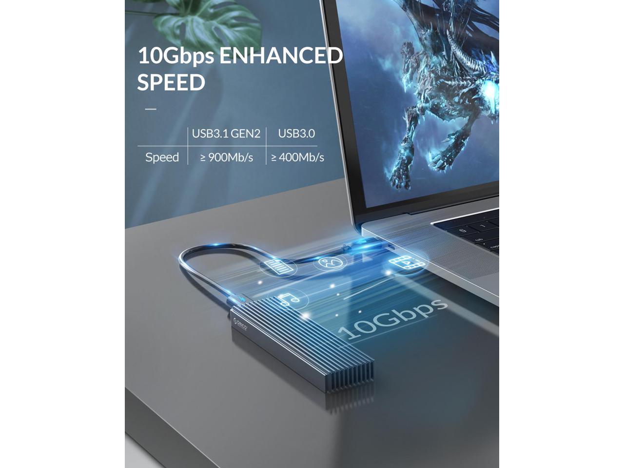 - 10Gbps SUPER SPEED: ORICO external M.2 enclosure adopting the latest USB3.1 Gen2 Type-C port, supports data transmission speeds of up to 10Gbps.