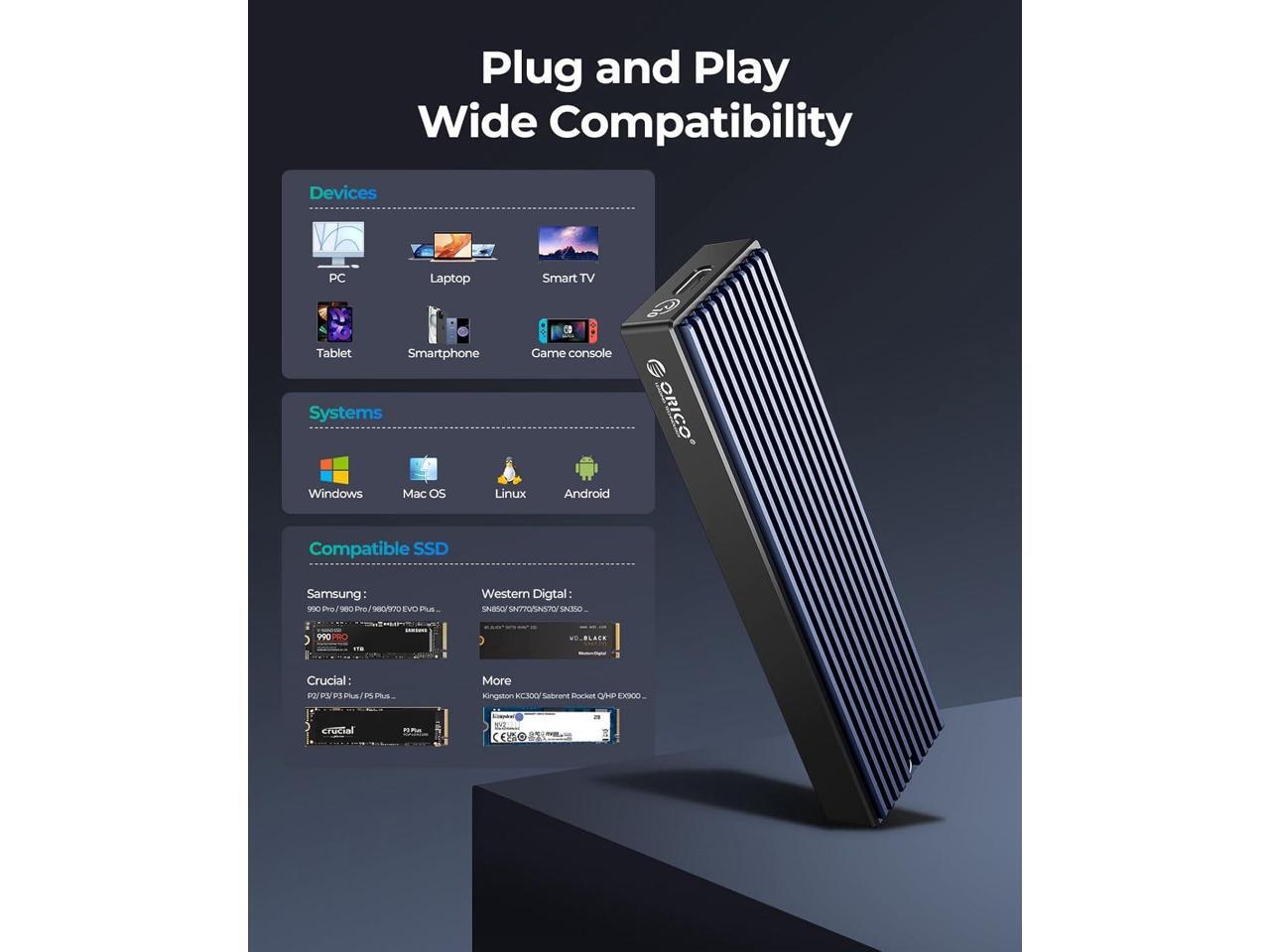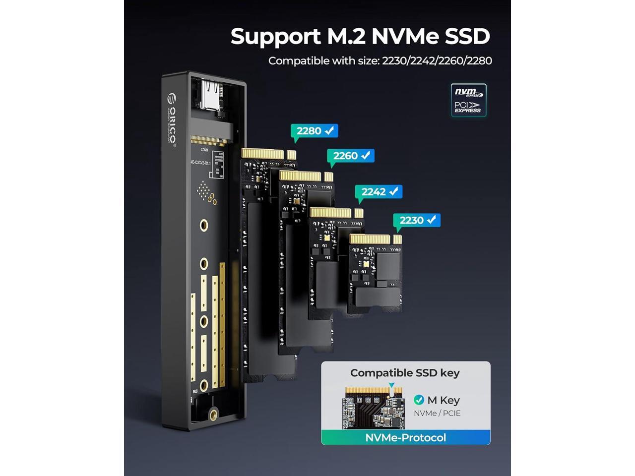 ORICO M.2 NVMe SSD Enclosure, USB 3.1 Gen 2 (10 Gbps) to NVMe PCI-E M.2 SSD Case Support UASP for NVMe SSD Size 2230/2242/2260/2280(up to 4TB)