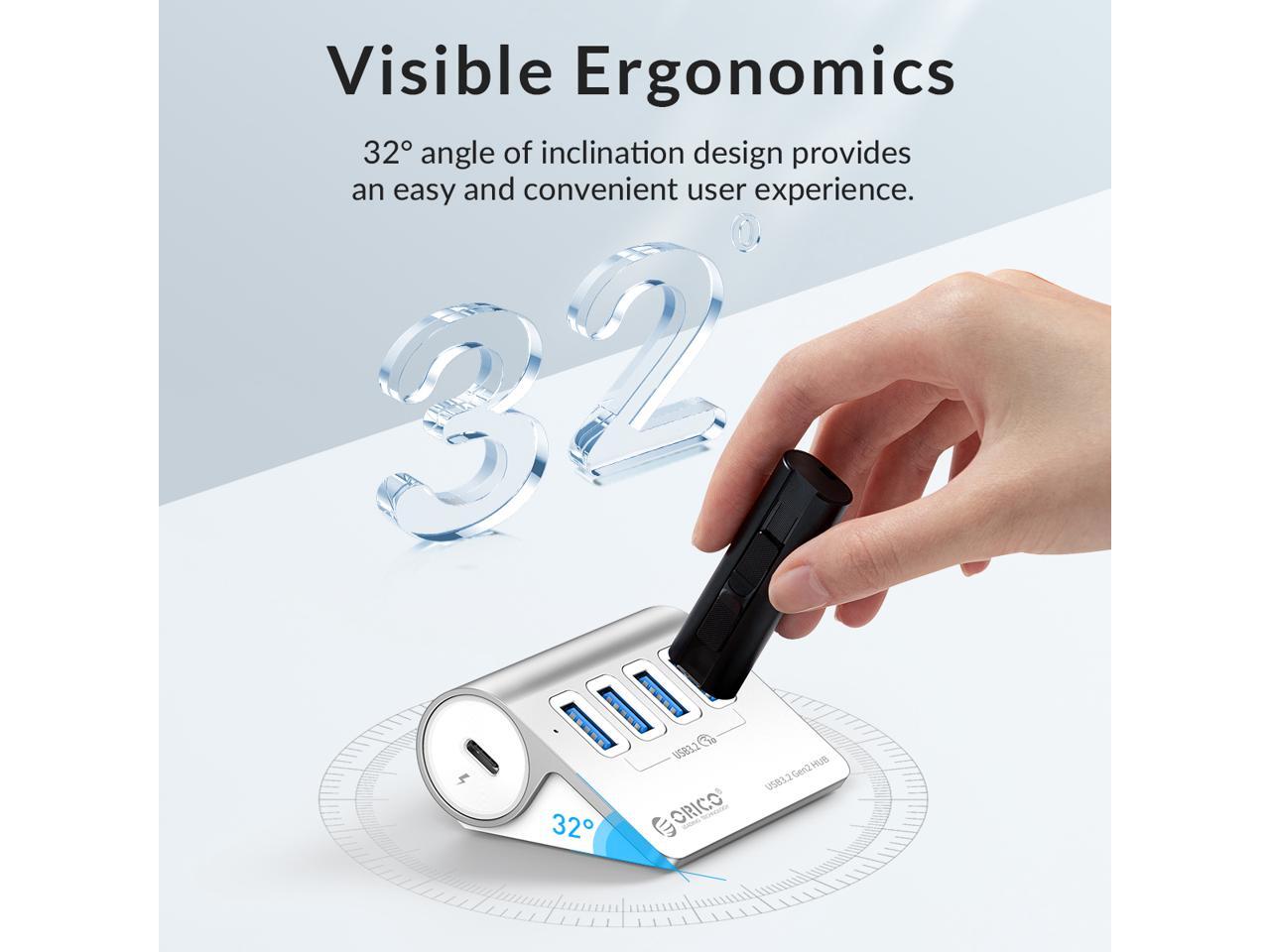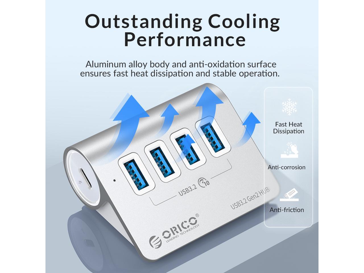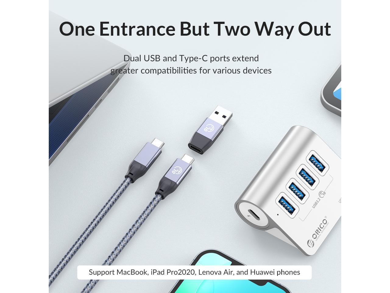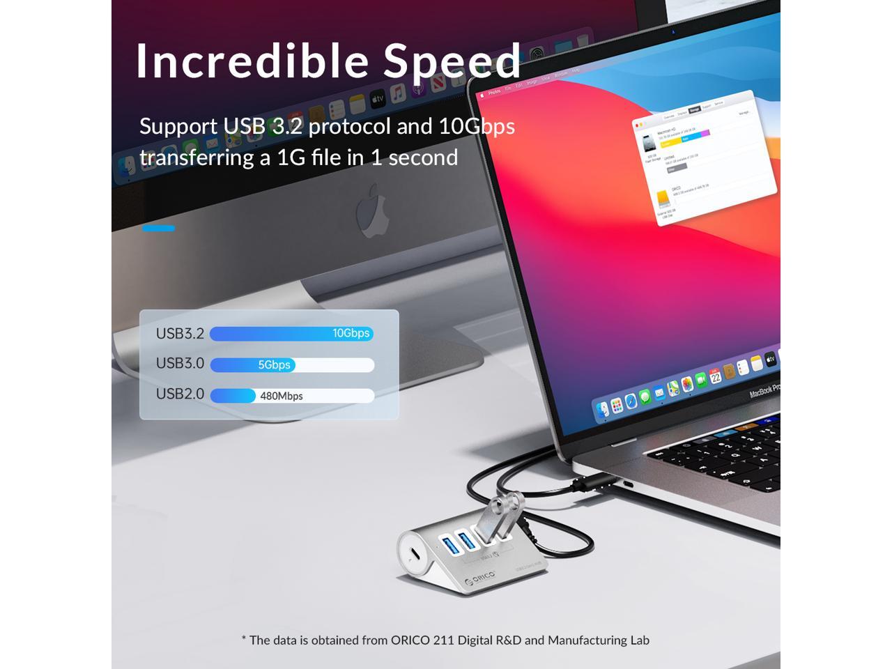 ORICO Aluminum 10Gbps USB 3.2 HUB 4 Port SuperSpeed Powered PD60W Charger Type C Splitter With Power Adapter for MacBook PC Accessories Silver 7 x USB 3.2 Port & 3.3ft Cable 10Gbps