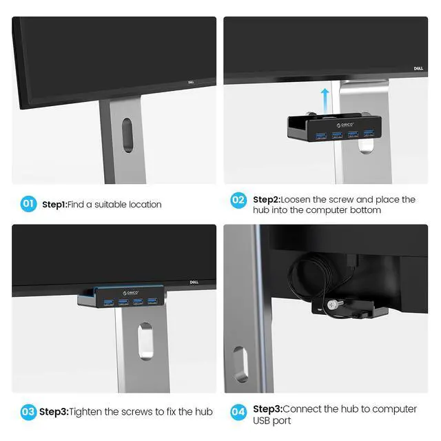 ORICO 4-Port USB 3.0 Clamp Design Mountable Hub