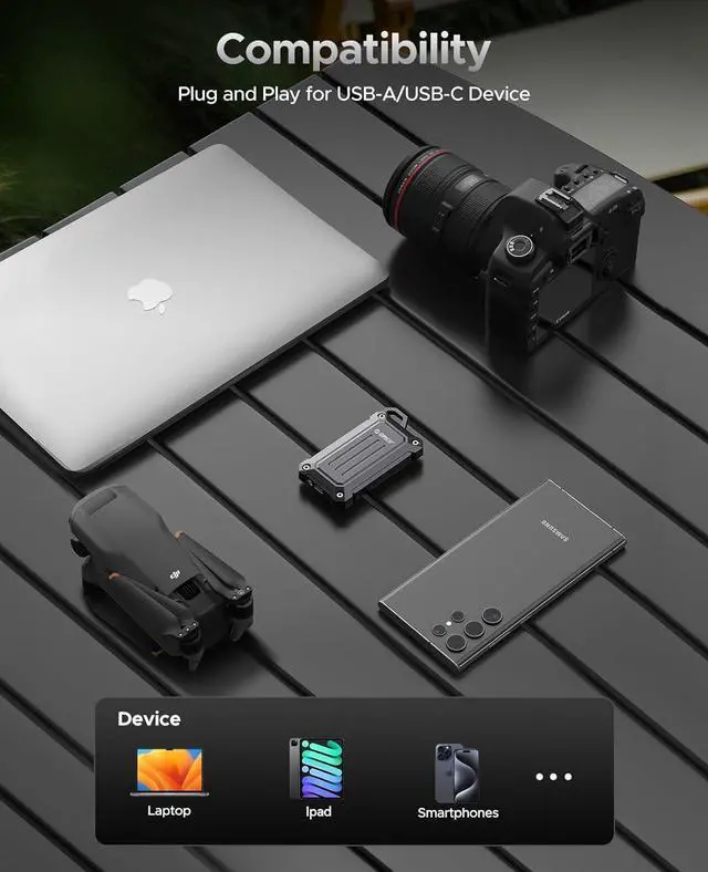- On the Go: With a compact size (3.51 x 1.79 x 0.59 inch) and robust build, this external SSD is easy to carry and performs exceptionally in rugged environments.
