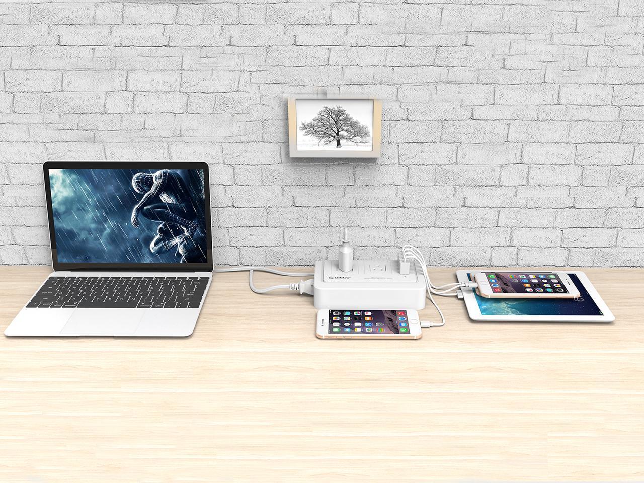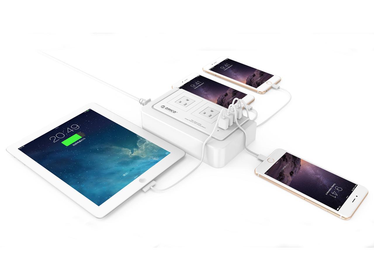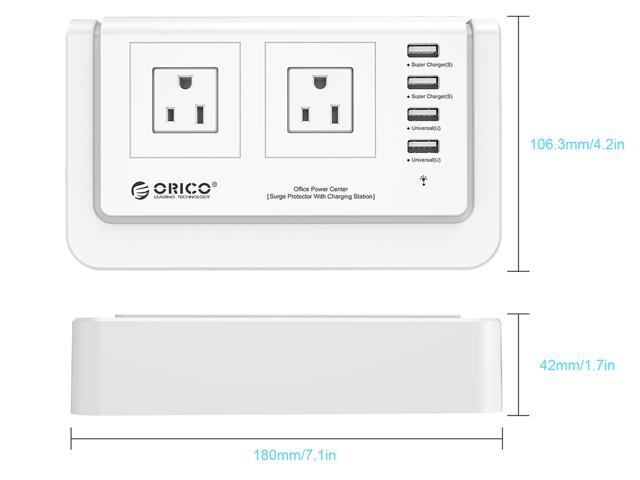 ORICO 2 Outlet Travel Power Board with 2 x 5V1A USB Charger Ports and 2 x 5V2.4A USB Super Charger Ports for iPhone, iPad, Samsung Galaxy S6 / S6 Edge, Nexus, HTC M9, Motorola, LG and More - White