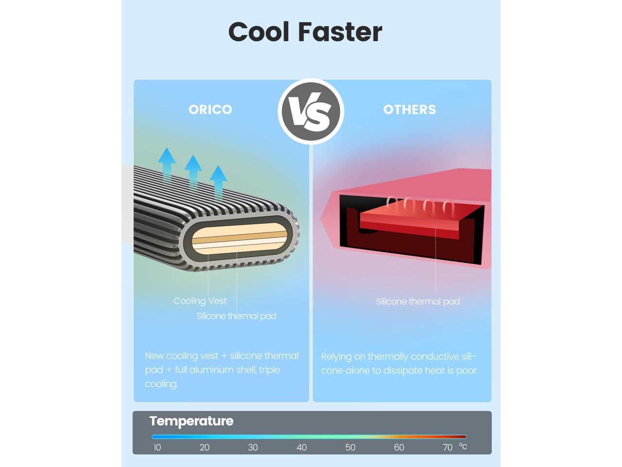 ORICO Aluminium NVMe M.2 SSD Enclosure USB3.2 Gen2 10Gbps USB C Support Up to 4TB SSD With C to C/A 2-in-1 Cable With Built-in Cooling Vest