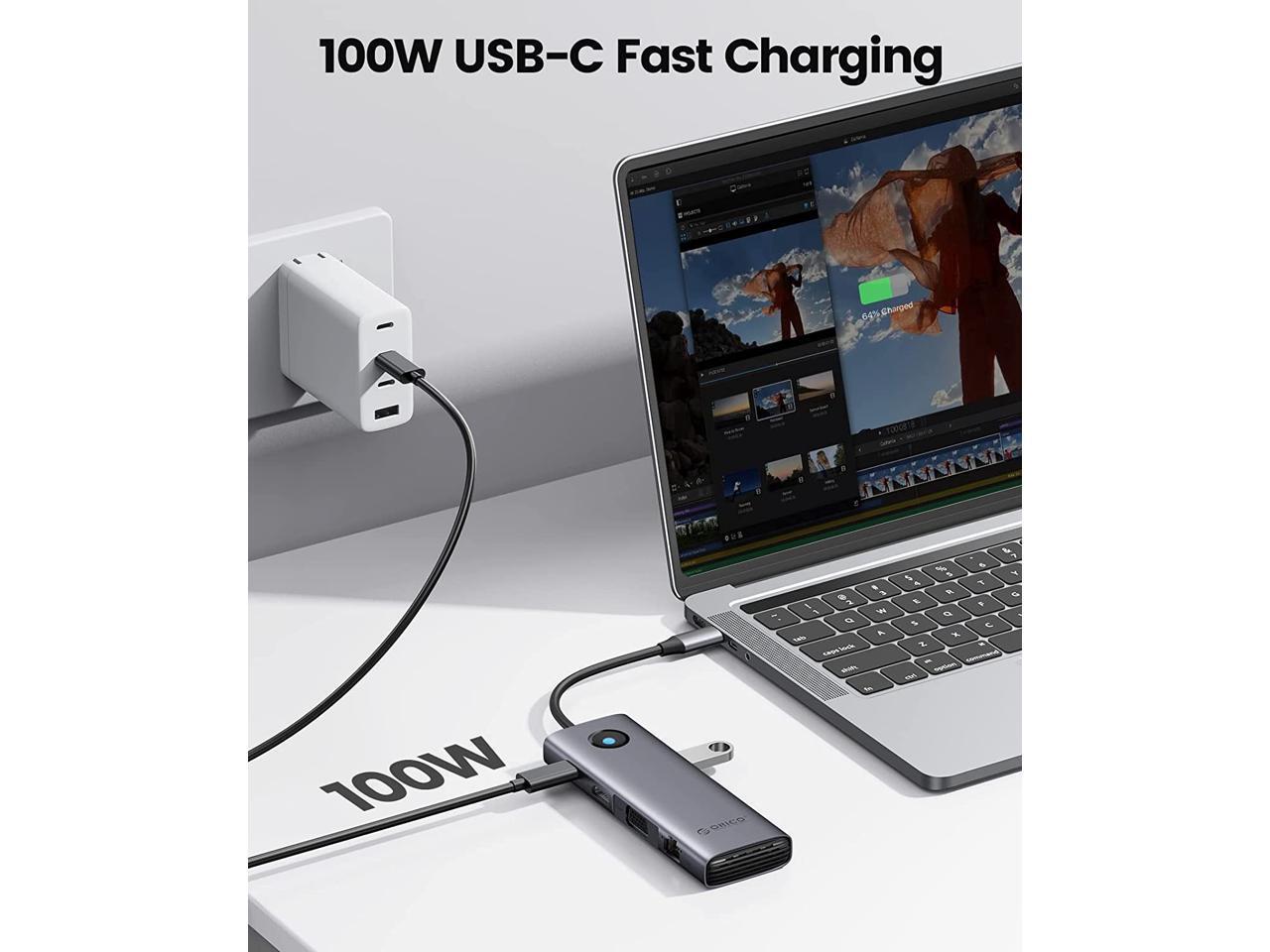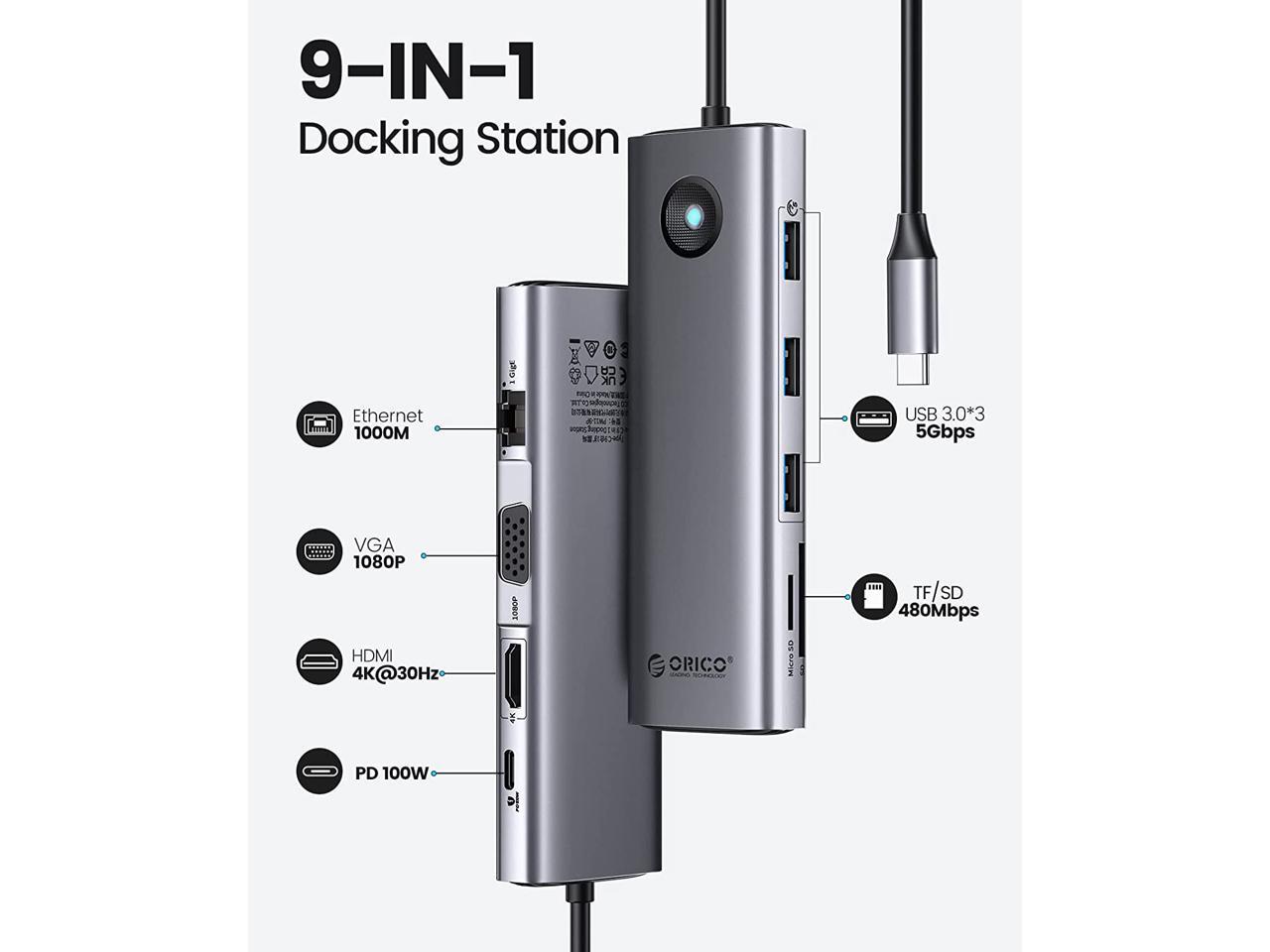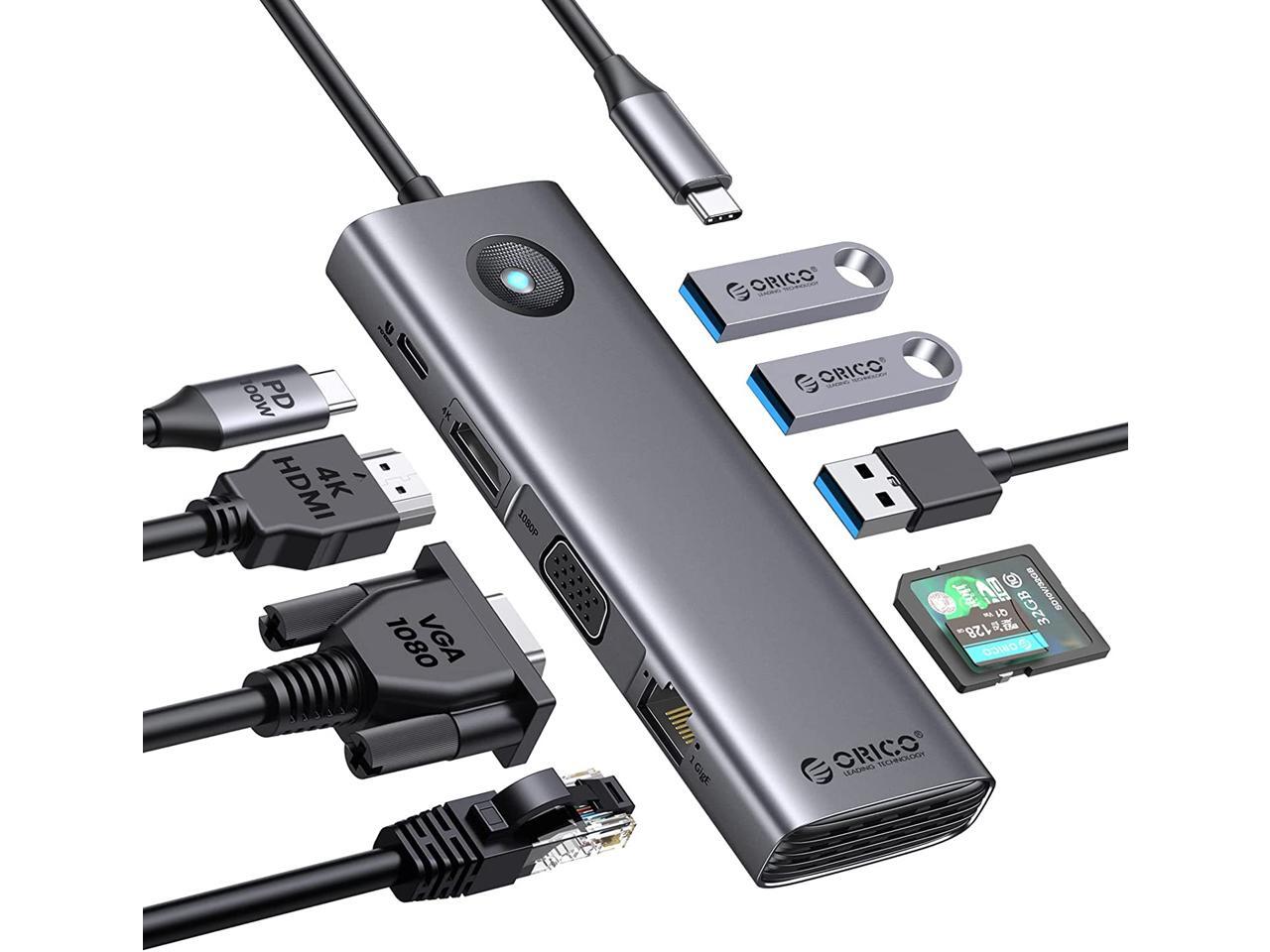 ORICO USB C Docking Station,9 in 1 USB C Dock with 1000Mbps with HDMI-Compatible 4K+PD100W+3*USB3.0+Ethernet+SD/TF+VGA,USB C Multiport Adapter for MacBook/Dell/HP/Surface/Lenovo