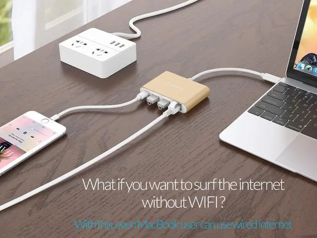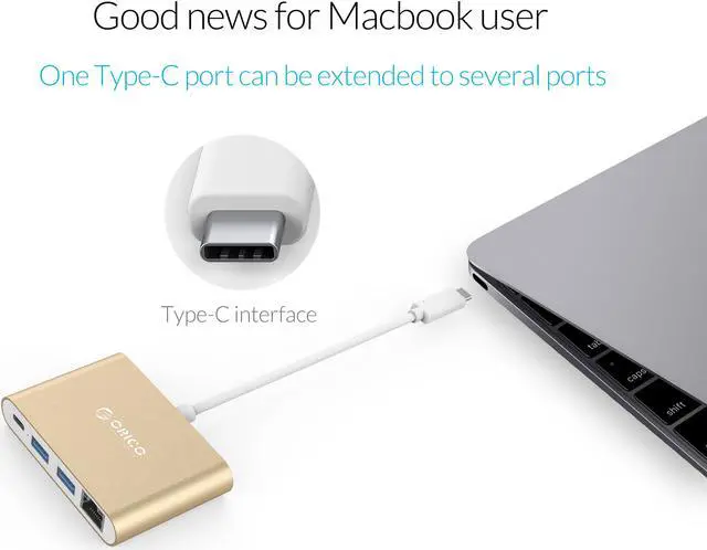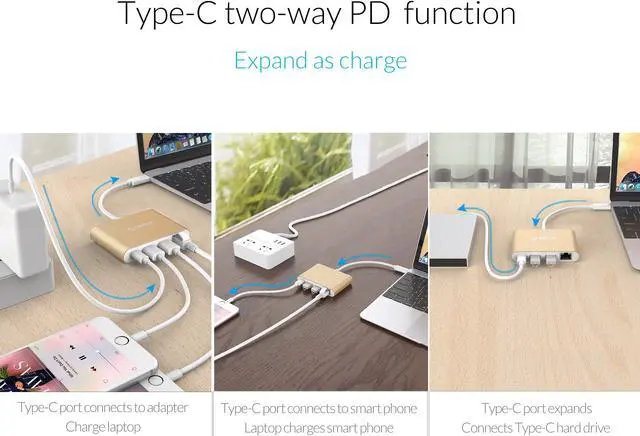 Hub: Extend 2 Super Speed USB 3.0 ports, one Ethernet Port, one USB Type-C PD Power delivery Type C Pass through Port. -