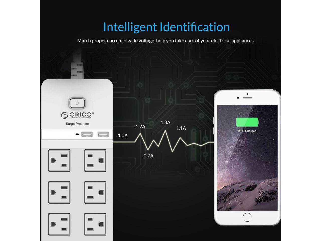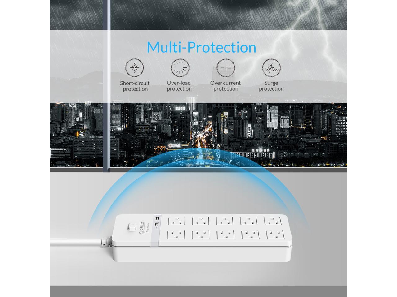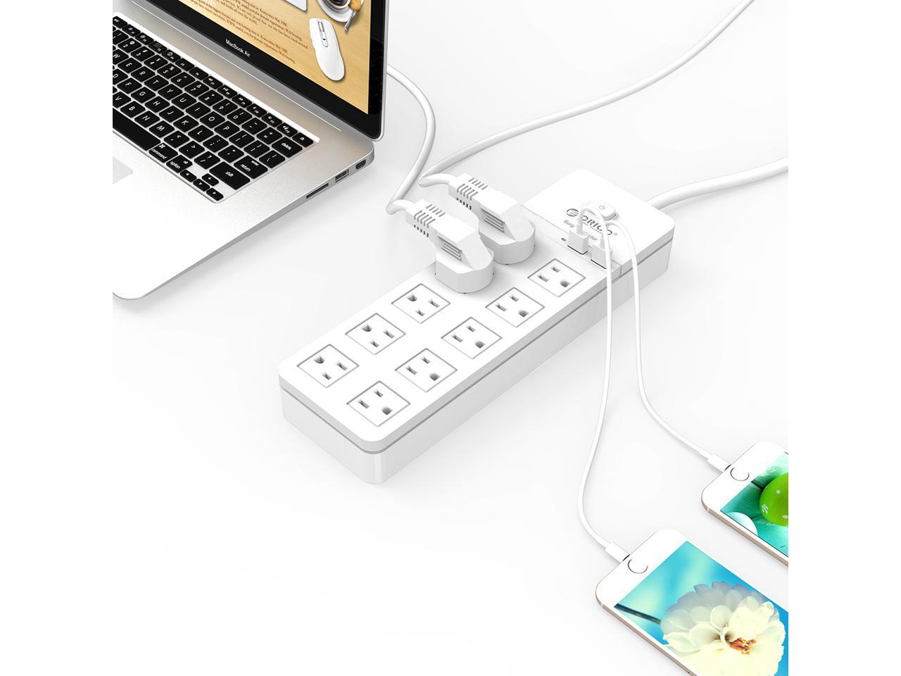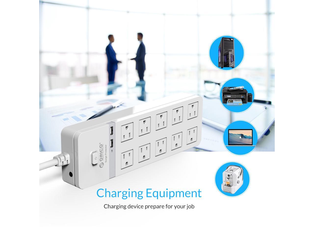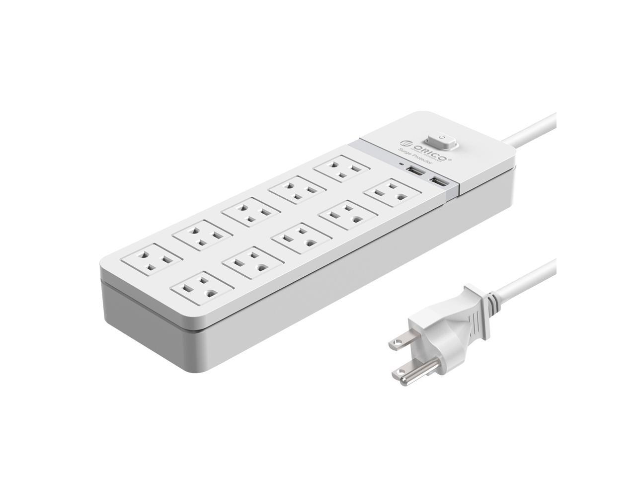ORICO 10 AC Outlet Surge Protector 2 Port 5V2.4A USB Super Charger Enegy Saving with Individual On/Off Switches for Home & Office iPhone 7/7Puls/6S/6S P/5SE/iPad/LG/Samsung/HTC - White