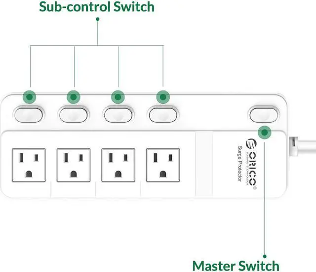 ORICO 5 Outlet Surge Protector allows you to power up to 5 electrical devices using one surge protector while protecting your electronics from voltage fluctuations, surges, and line noises.