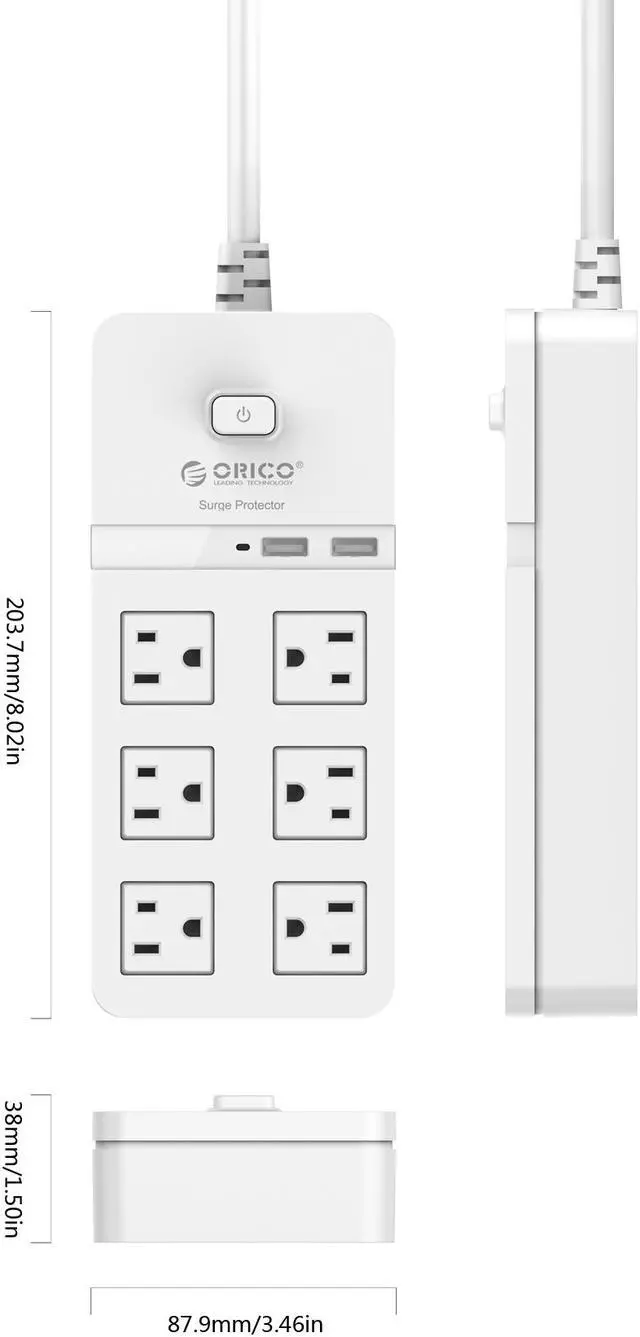 ORICO 6 AC outlet surge protector with a total output of 1875W provides reliable surge protection for your valuable devices both at home and office.
