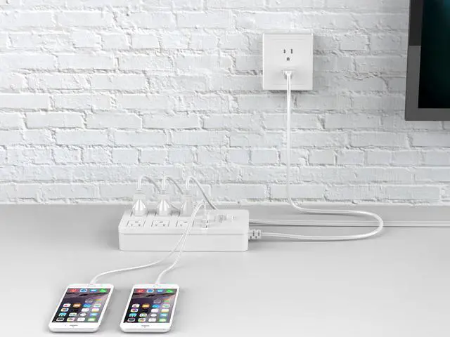 This high-end power strip is your ideal solution for power supply in office. It has 6 AC outlets and 2 USB super charging ports.