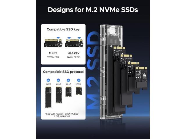 - Compatibility:Only M.2 M KEY SSD (NVME protocol) is supported with the form of 2280, 2260, 2242, 2230. Compatible with multiple operating systems: window / Mac / Linux; Note the Trim UASP protocol.