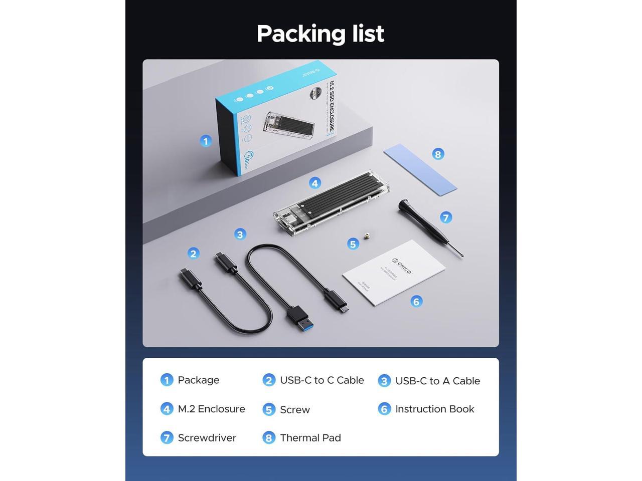 ORICO M.2 NVMe SSD Enclosure, USB 3.2 Gen 2 (10 Gbps), Transparent External Solid State Drive Adapter Enclosure for 2280 2260 2242 2230 PCI-E M2 M-Key SSD, USB Type C Converter Case-TCM2 Black