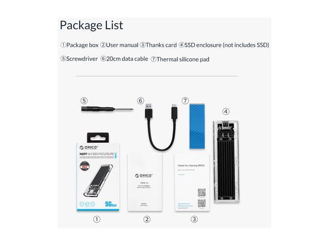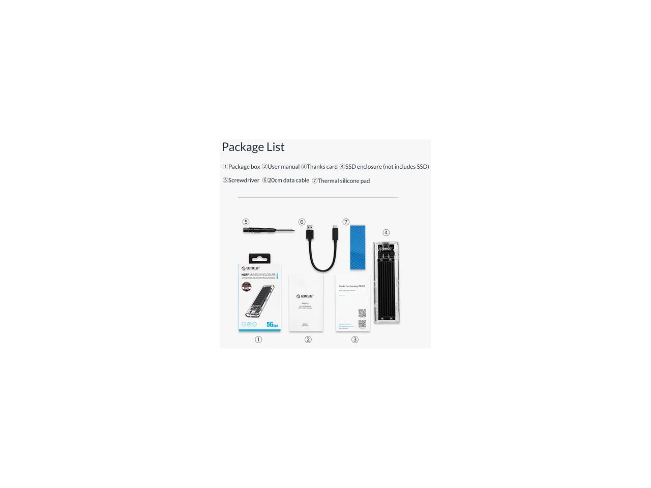 ORICO M.2 to Type-C SSD Enclosure NGFF Transparent USB3.1 Type-C 6Gbps Support UASP 2TB for PCIE NGFF SATA B key SSD Disk - Black