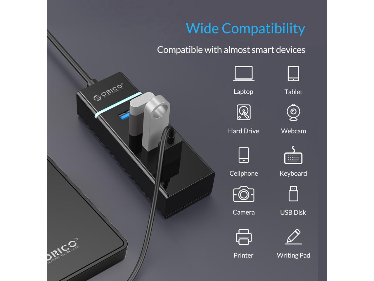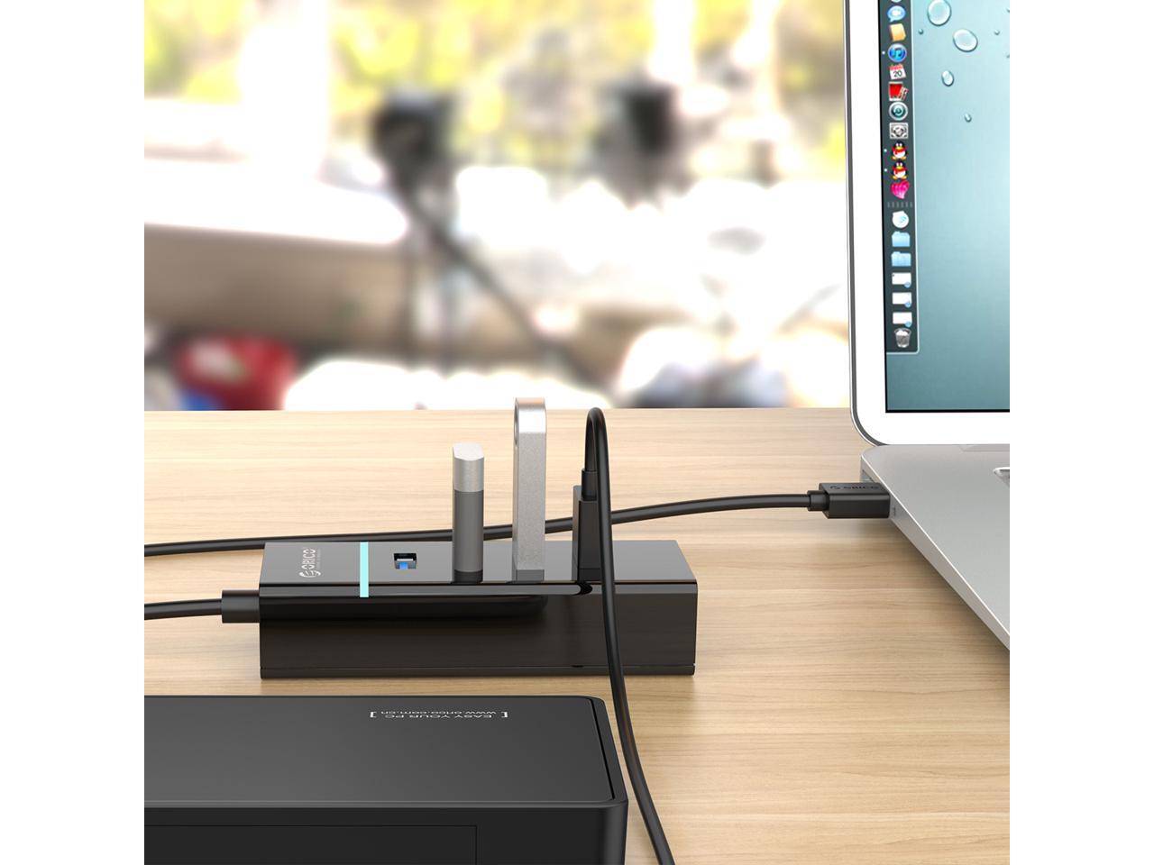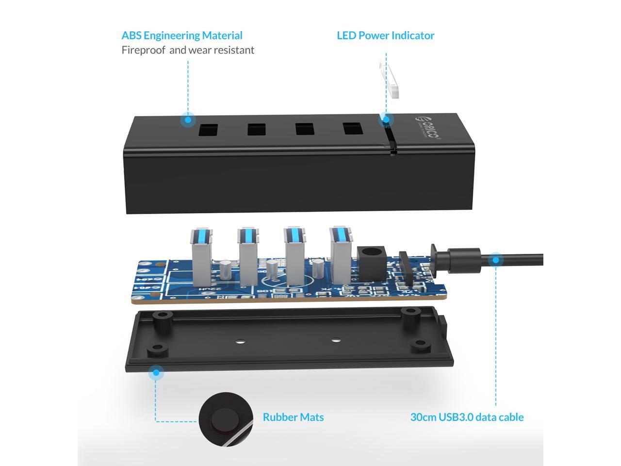 ORICO 4-Port USB 3.0 HUB Super Speed 5Gbps With LED Indicators, 1 ft Data Cable for Desktop, iMac, Surface Pro, XPS, USB Flash Drives, Mobile HDD, and More - Black