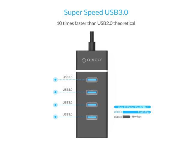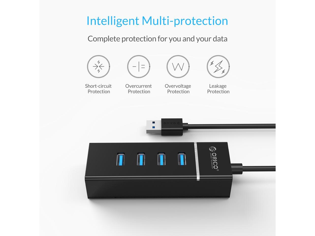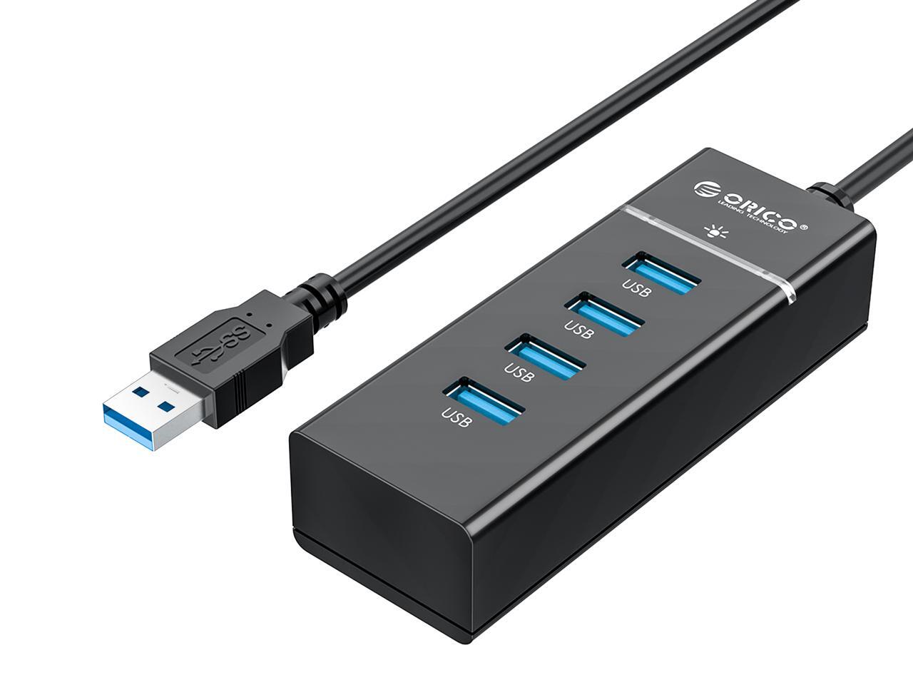 ORICO 4-Port USB 3.0 HUB Super Speed 5Gbps With LED Indicators, 1 ft Data Cable for Desktop, iMac, Surface Pro, XPS, USB Flash Drives, Mobile HDD, and More - Black