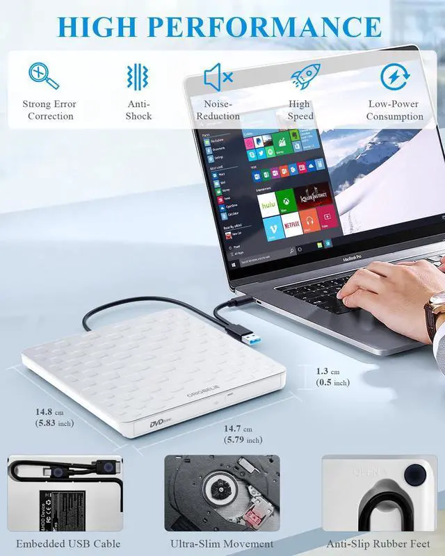 External DVD player designed with upgrad ultra-thin movement, which offer faster speed, low impedance and anti-interference ability, ensures a smooth experience.