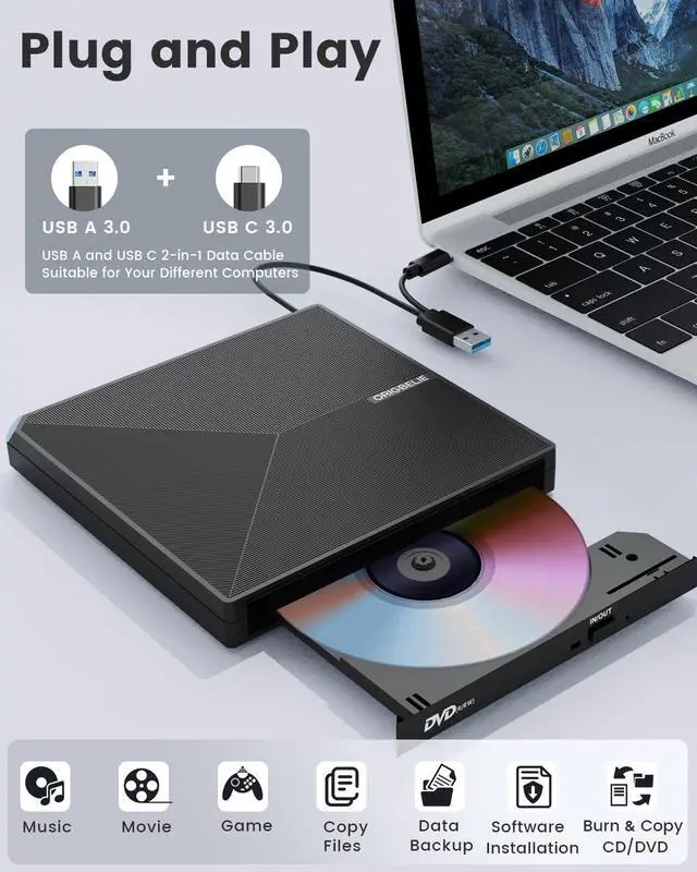 If you haven’t ripped your music CDs to audio files on your computer yet, it’s not too late. All it takes is a ORIGBELIE CD drive and a bit of time. When you’re done, your physical music collection will become your digital music collection, You can then listen to that music on your computer or copy it over to your smartphone. There are even many services that will let you store that music online and stream it from anywhere!